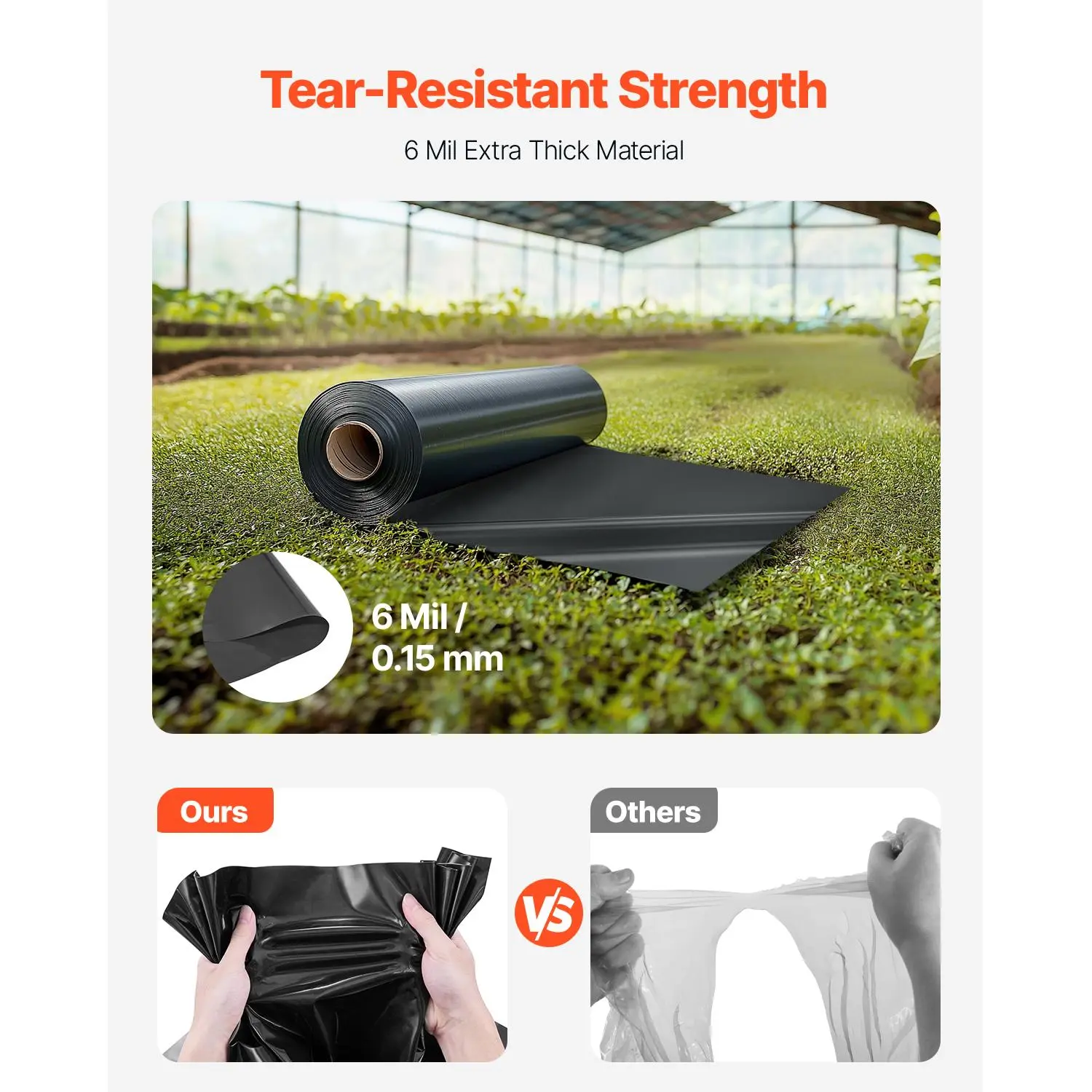 • Superior Durability & Weather Resistance: Crafted from 6mil/0.15mm heavy-duty polyethylene, this plastic sheeting offers outstanding toughness and longevity. It resists tearing and can withstand harsh conditions such as high winds, cold temperatures, and extreme sunlight exposure, ensuring a long-lasting lifespan.