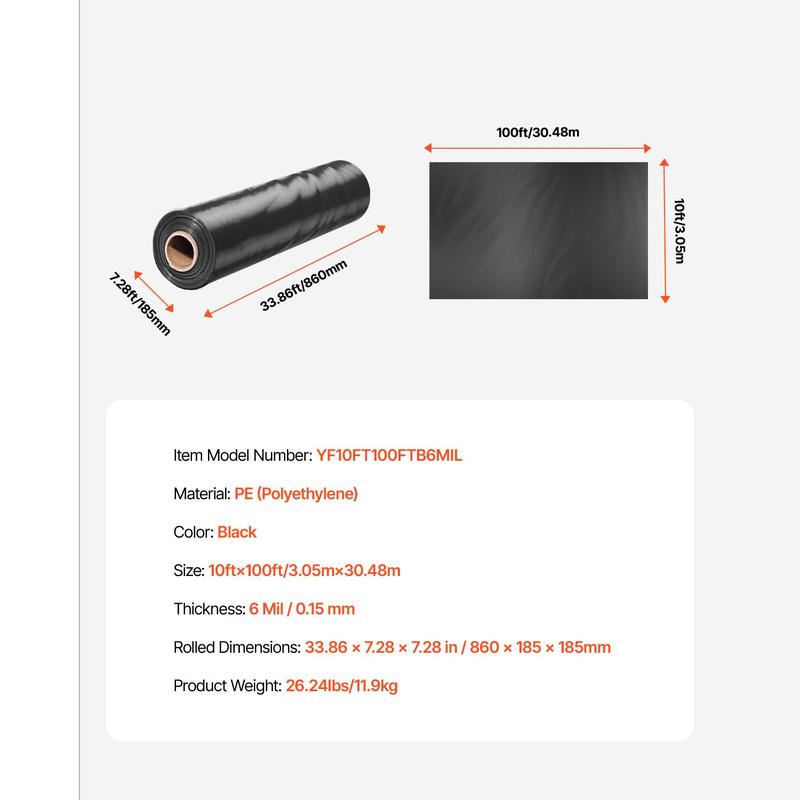 • Large Size for Maximum Coverage: Measuring 10 x100 ft (3.05m x 30.48m), this garden plastic sheeting provides ample coverage, making it suitable for extensive indoor and outdoor applications.