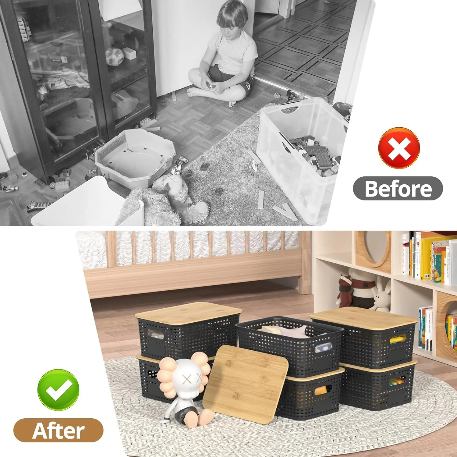 Versatile Usage: These plastic baskets are for organising and storing all kinds of office supplies, toys, toiletries, etc. in your home or office, and can be placed in wardrobes, shelves, desks, living rooms, bedrooms, kitchens, bathrooms, playrooms and garages