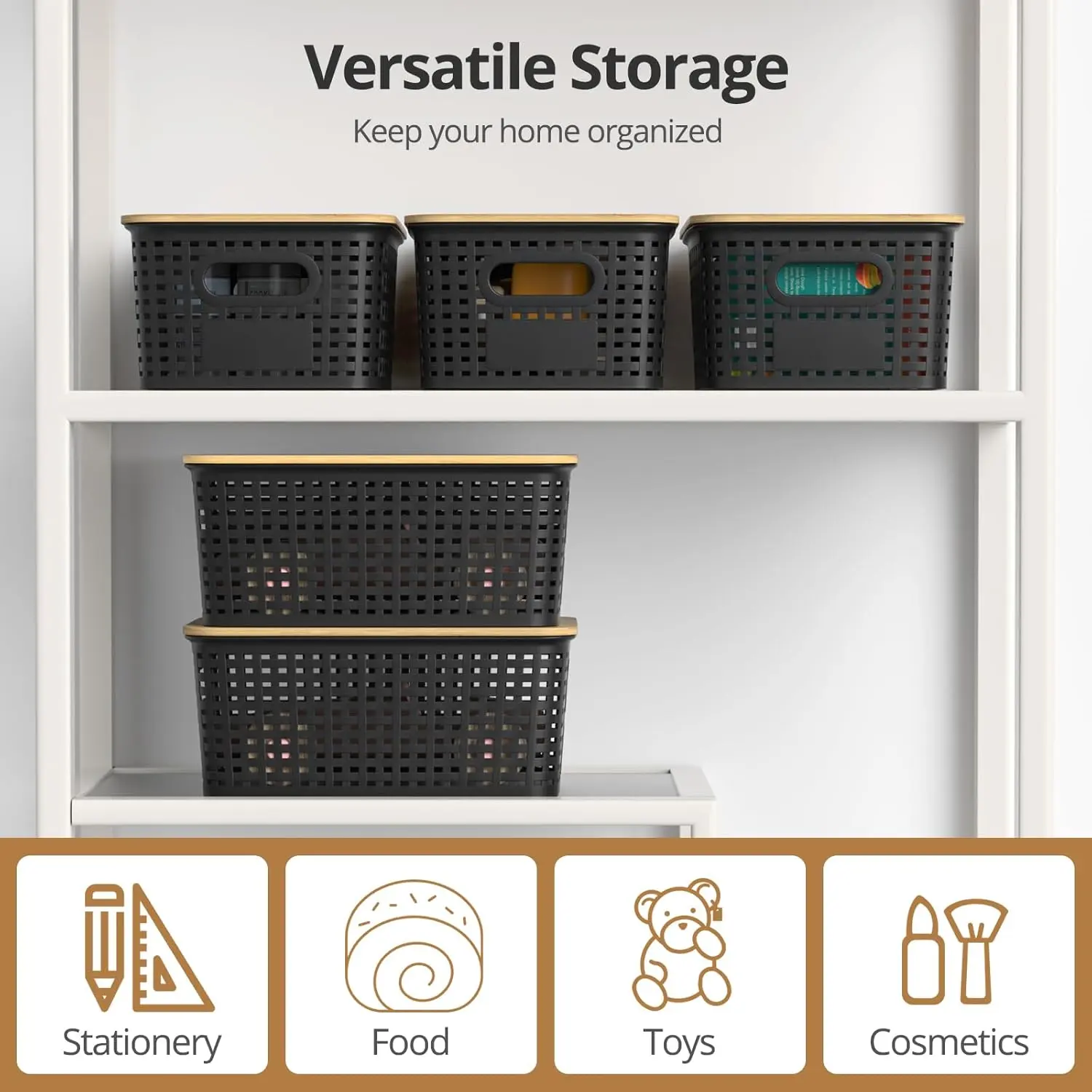 Compact Storage: These plastic storage containers with lids, , which makes it keeping for long-term use and safety. This storage bins dimensions 10.2L x 7.2W x 4.1H inch can helps you organize and store various items for your storage needs