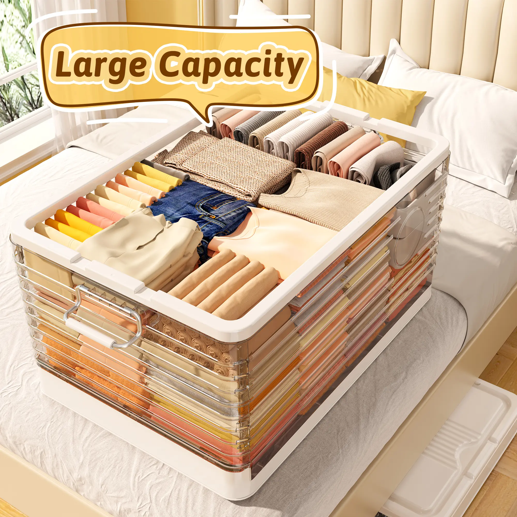 ·Roomy & Spacious:Say goodbye to clutter! This plastic storage bins takes your worries away,offering plenty of space to store everything you need—whether it's food, clothes, or more! Keep your stuff organized and stress-free!