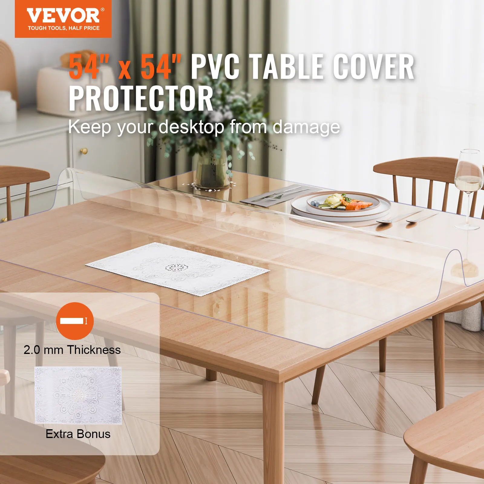 • Protect Your Table: Our 54x54 inch/ 1372x1372 mm table cover protector provides all-around protection for your desktop, safeguarding your desktop from scratches, stains, watermarks, and burns. Say goodbye to worries about damage caused by hot cups, cutlery, or spills. With the clear color, our table cover brings life back to your desktop.