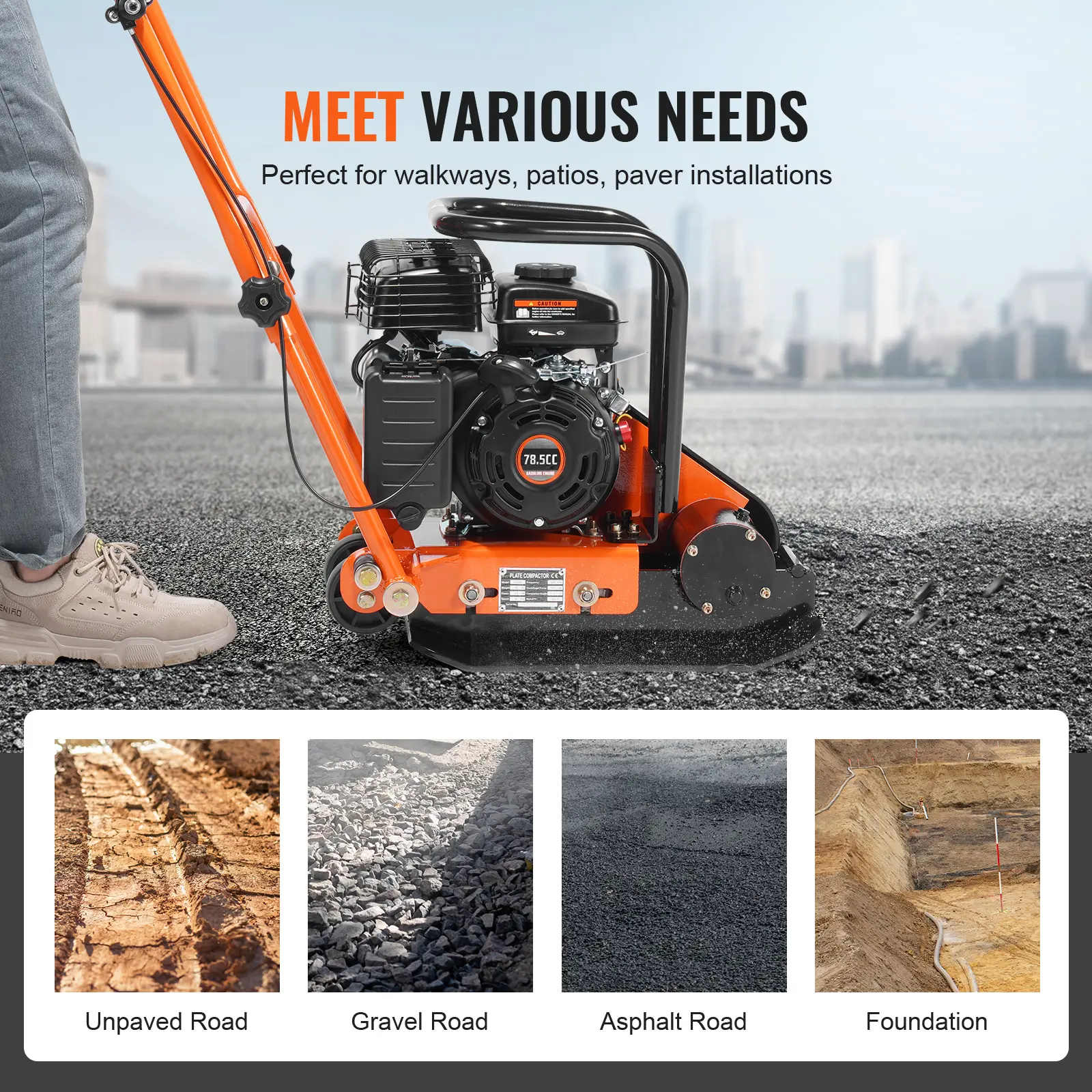 • Your Road Specialist: The compactor machine that can do it all! Our versatile tool has been well-received in construction, municipal, highway, and railroad projects, delivering professional results in compacting dirt, gravel, lawn, and more. Get the job done flawlessly!