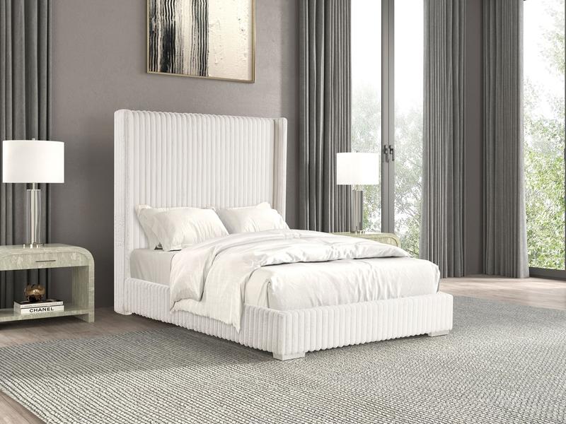 Enhance your bedroom with this elegant off-white bed and enjoy a peaceful retreat that combines modern minimalism with timeless design.
