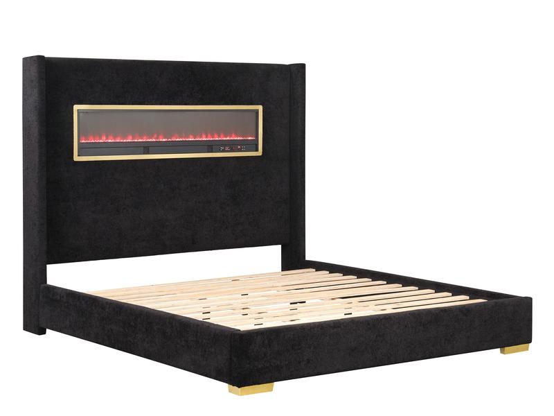 Introducing the Manhattan Platform Bed. Inspired by the sleek skyline and sophisticated style of Manhattan living, this bed turns your bedroom into an urban retreat. The standout feature? A stunning 3D flame box display embedded in the headboard, framed in brushed gold stainless steel for a touch of glam. The display simulates realistic flames in 13 customizable colors with 5 brightness levels — no heat, just pure ambiance!