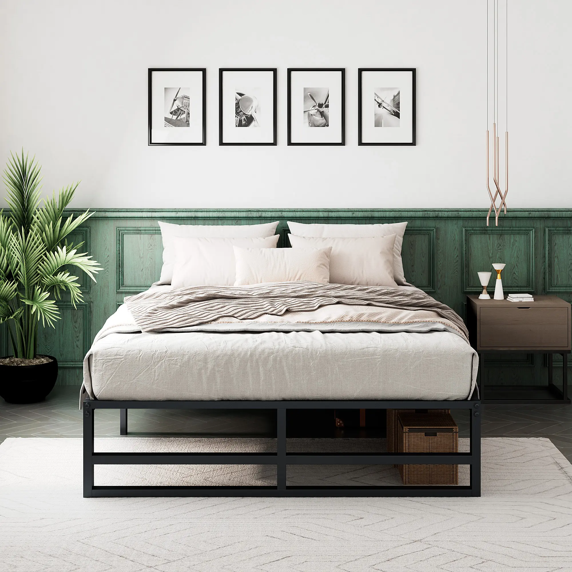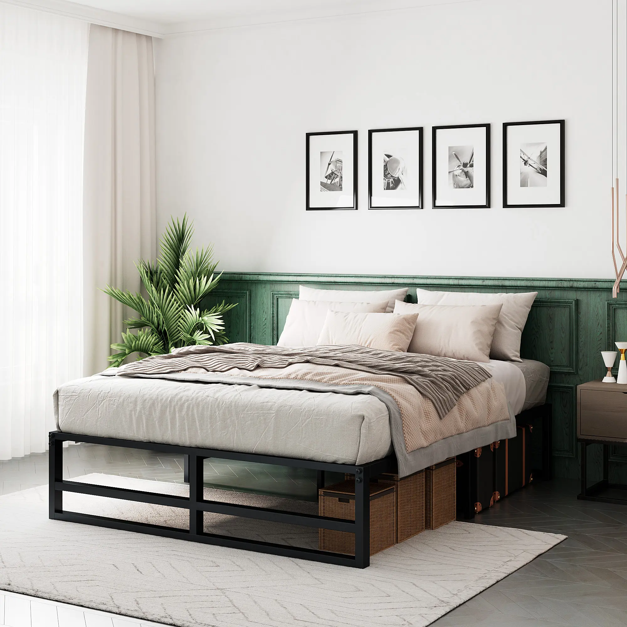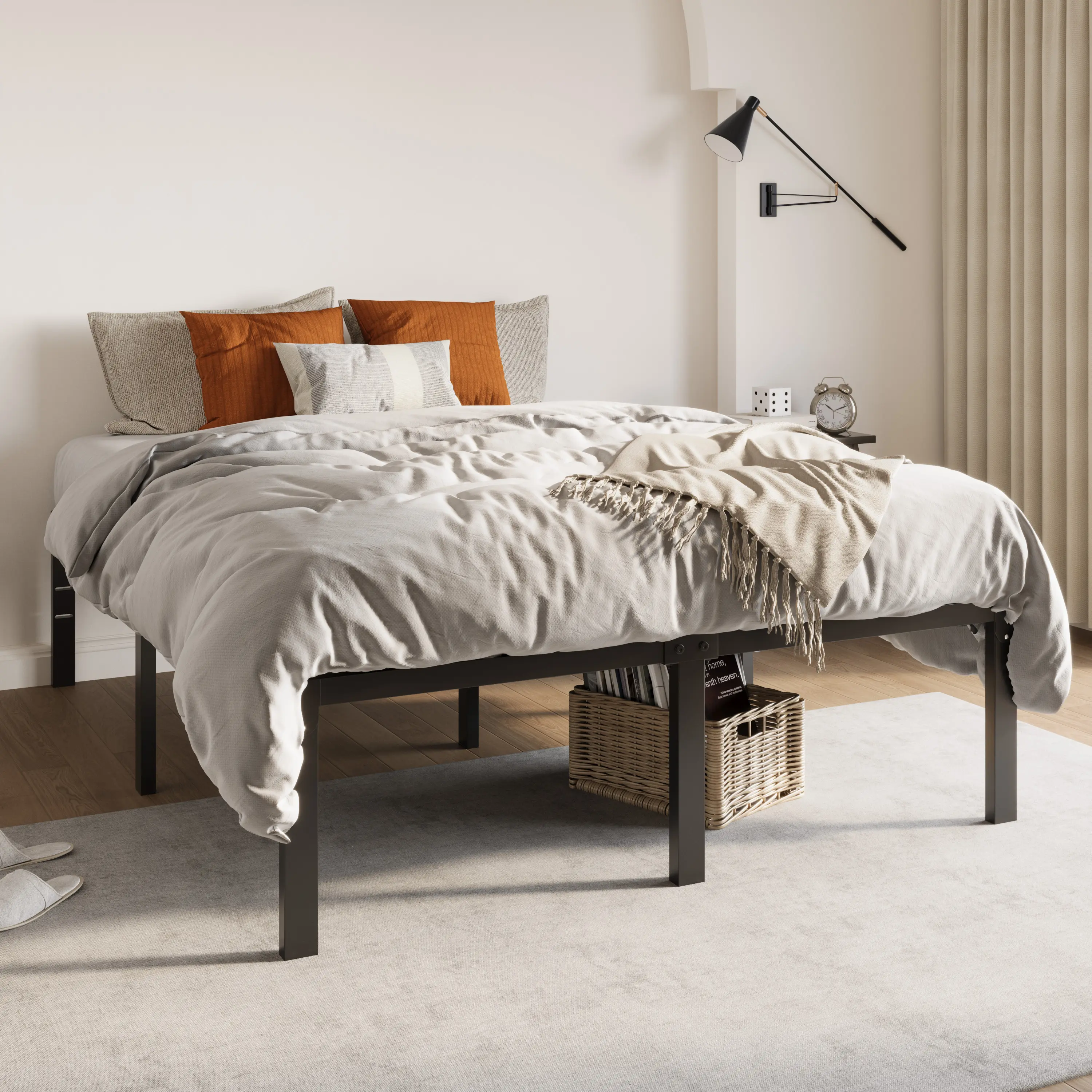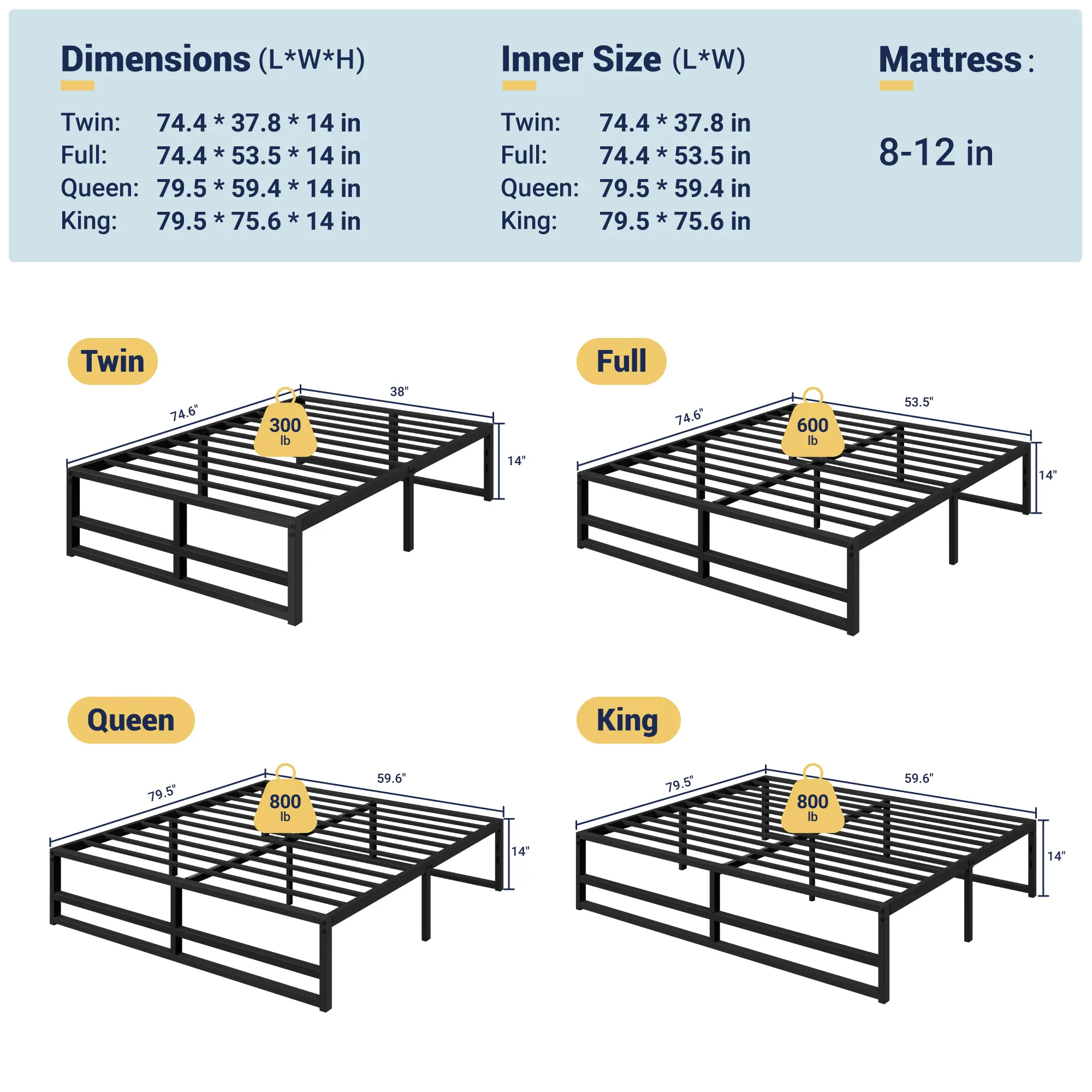 I got a full size frame, set it up myself. Didnt take too long, about an hour. Plenty of space under for anything, storage. It’s a solid frame, not bad at all. Came with extra bolts and screws in case you lose some. Also has optional adhesive strips in case the mattress slides around.