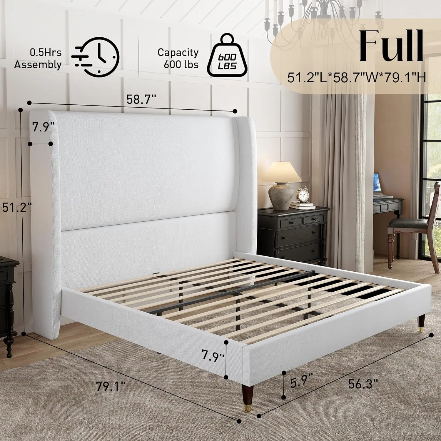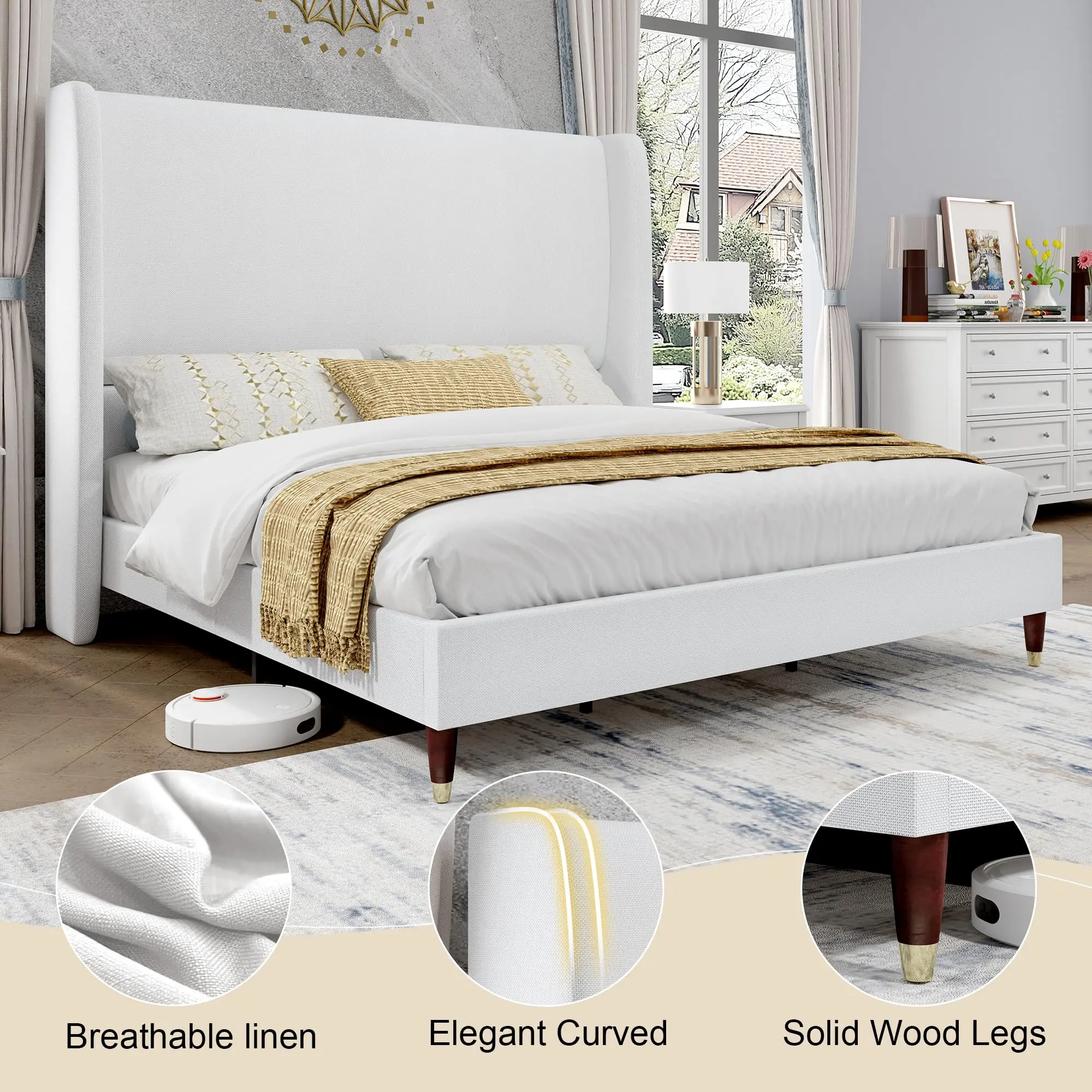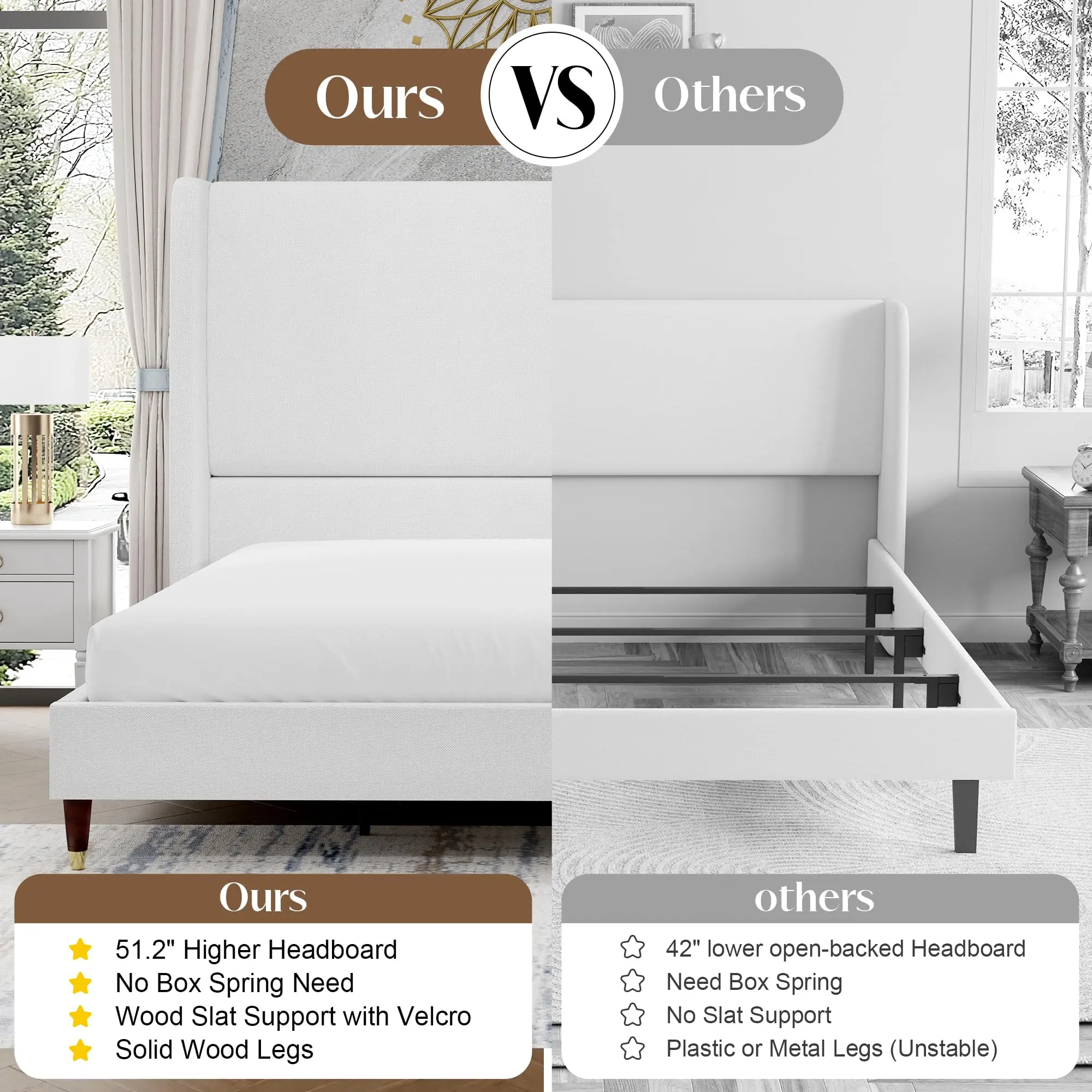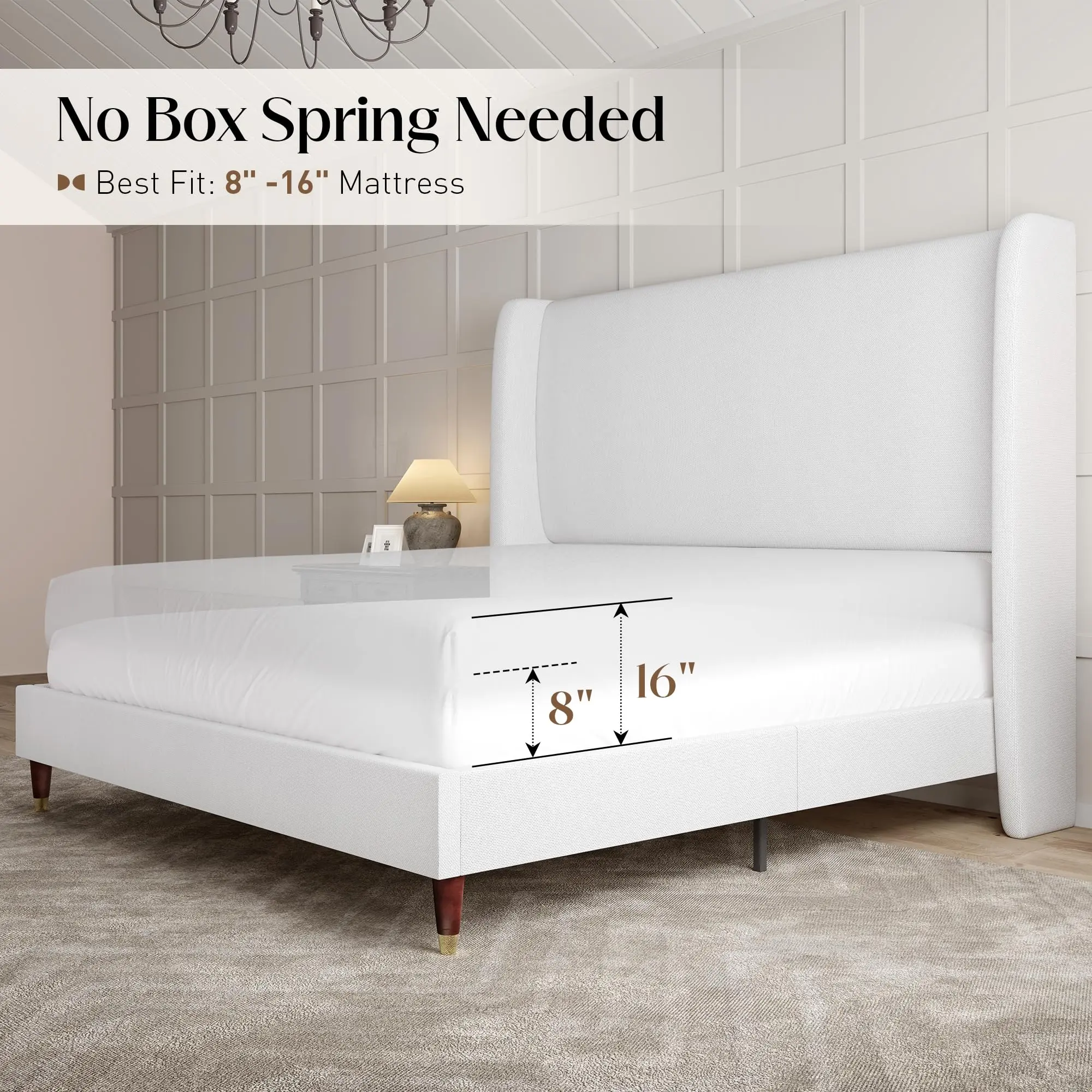 Super happy with this bed frame! It looks so clean and modern — exactly what I was going for. Assembly was surprisingly easy and it feels really sturdy. The white finish is perfect for my minimalist vibe and matches well with any decor. Love that I didn’t need a box spring. Highly recommend if you’re looking for something stylish but budget-friendly!