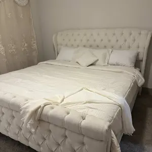 #amerilife #velvetbuttontucked #wingbackscroll #platformsleighbed #sleighbed #beautifulbedframe #fyp #greatcompany #musthaves #lovemybed