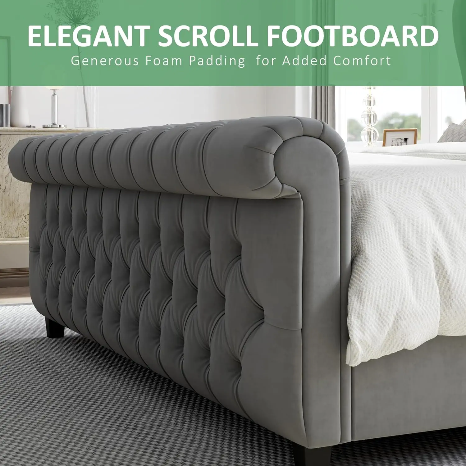 ·CONTEMPORARY & LUXURY - Combines stylish buttoned detailing with striking rolled headboard & footboard design, this king size sleigh bed is easily mixed with any bedroom style or color scheme.