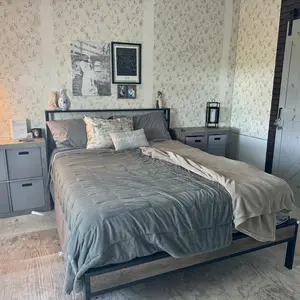 Loved it was easy assembly and looks so good in my bed room and the chargers in it make it so easy and convenient not to mention how heavy duty it is as well 10/10 purchase.