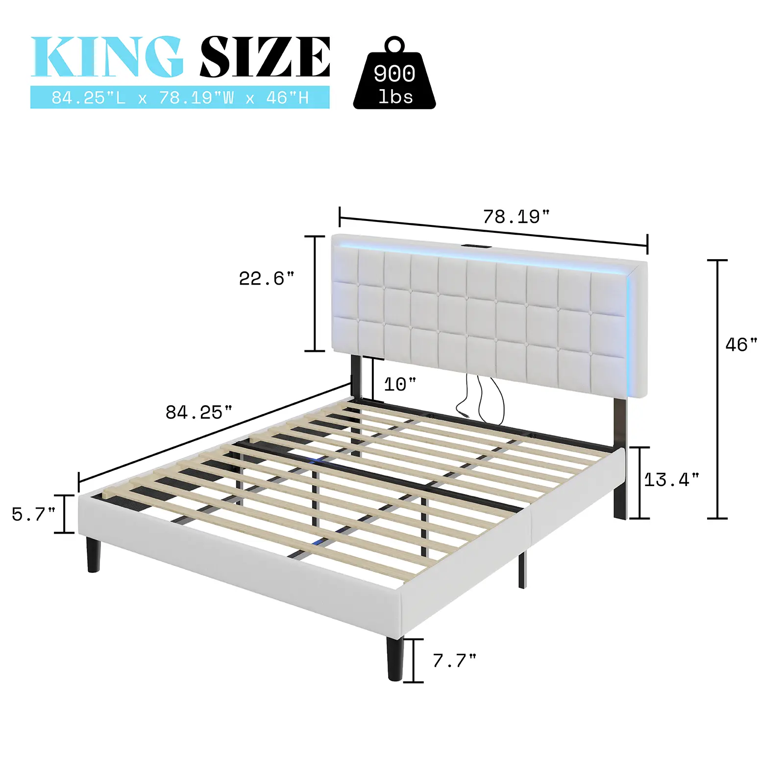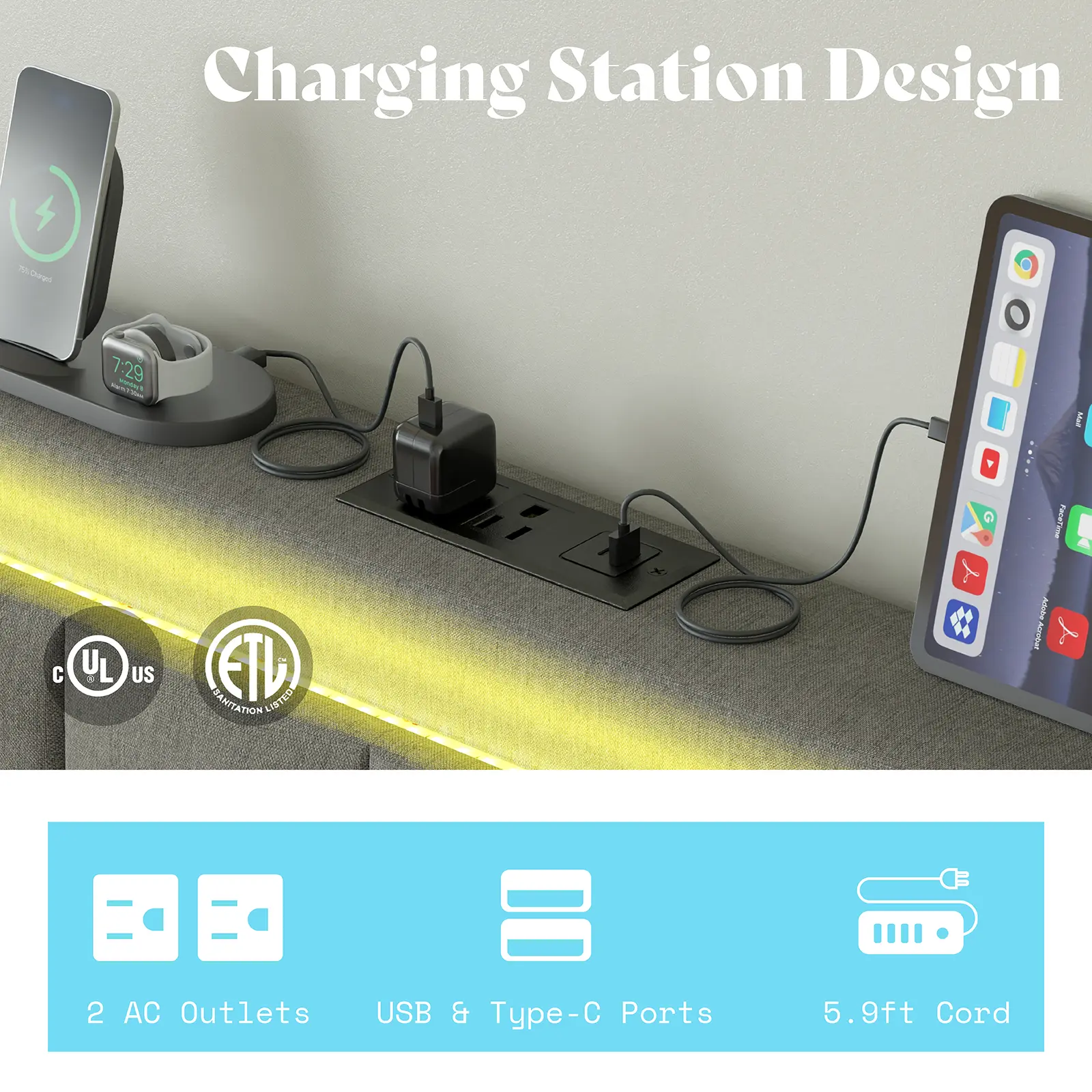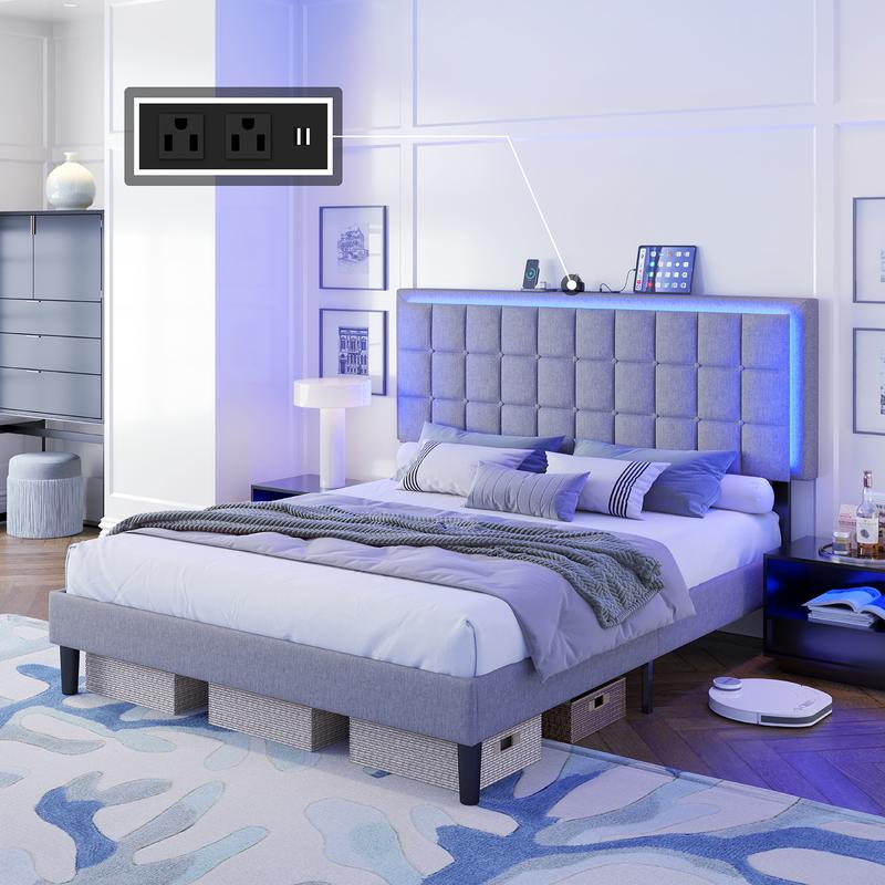 Charging Station & Easy to Assemble: Our queen-size bed platform is expertly engineered to be simple and easy to assemble, equipped with a convenient charging station with 2 AC outlets, USB & Type-C ports, and a 5.9ft cord.