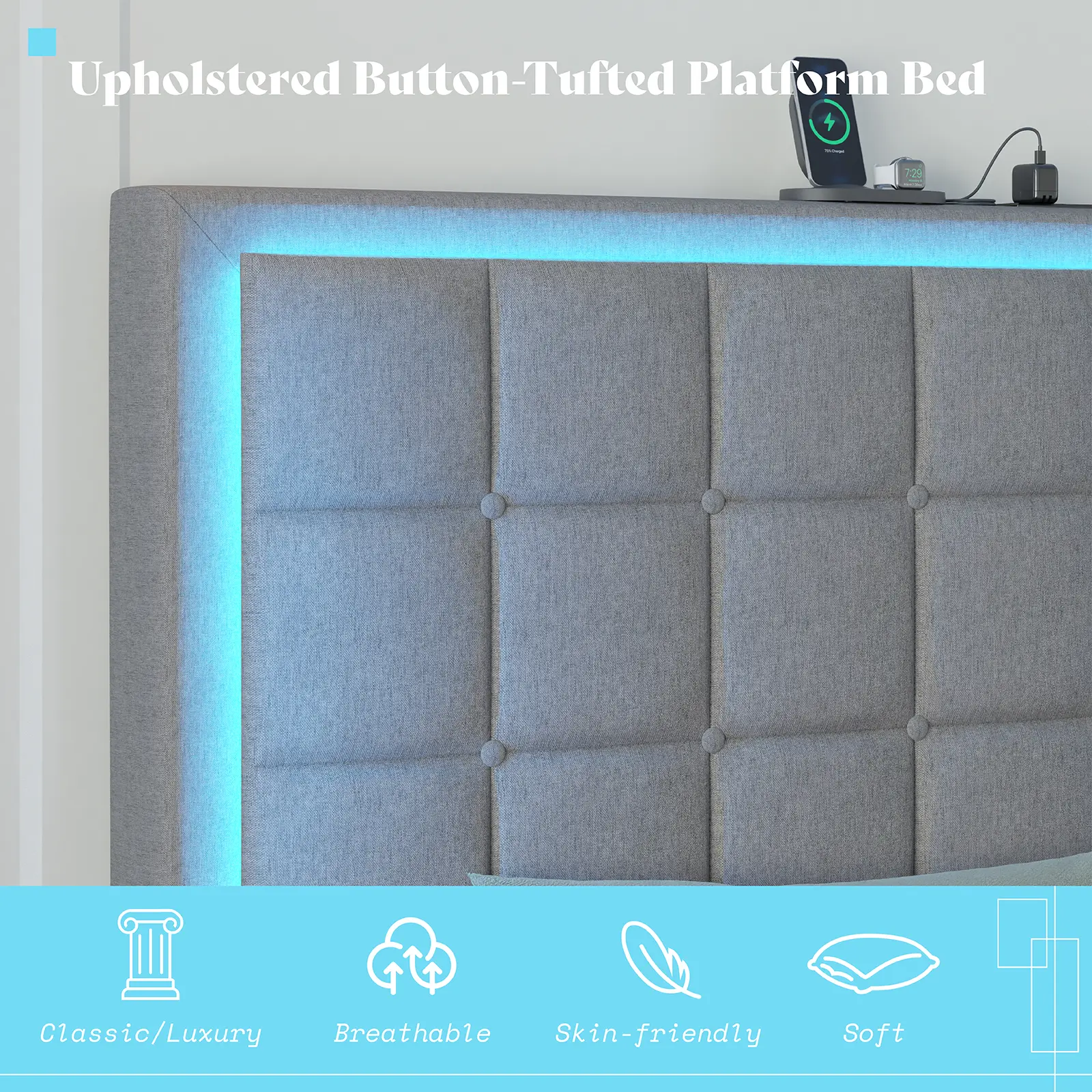 Button-Tufted Beds Design: The classic upholstered design provides visual appeal. You will get a comfortable and luxurious sleeping experience with our bed featuring breathable, skin-friendly linen fabric. Say goodbye to the need for a box spring.