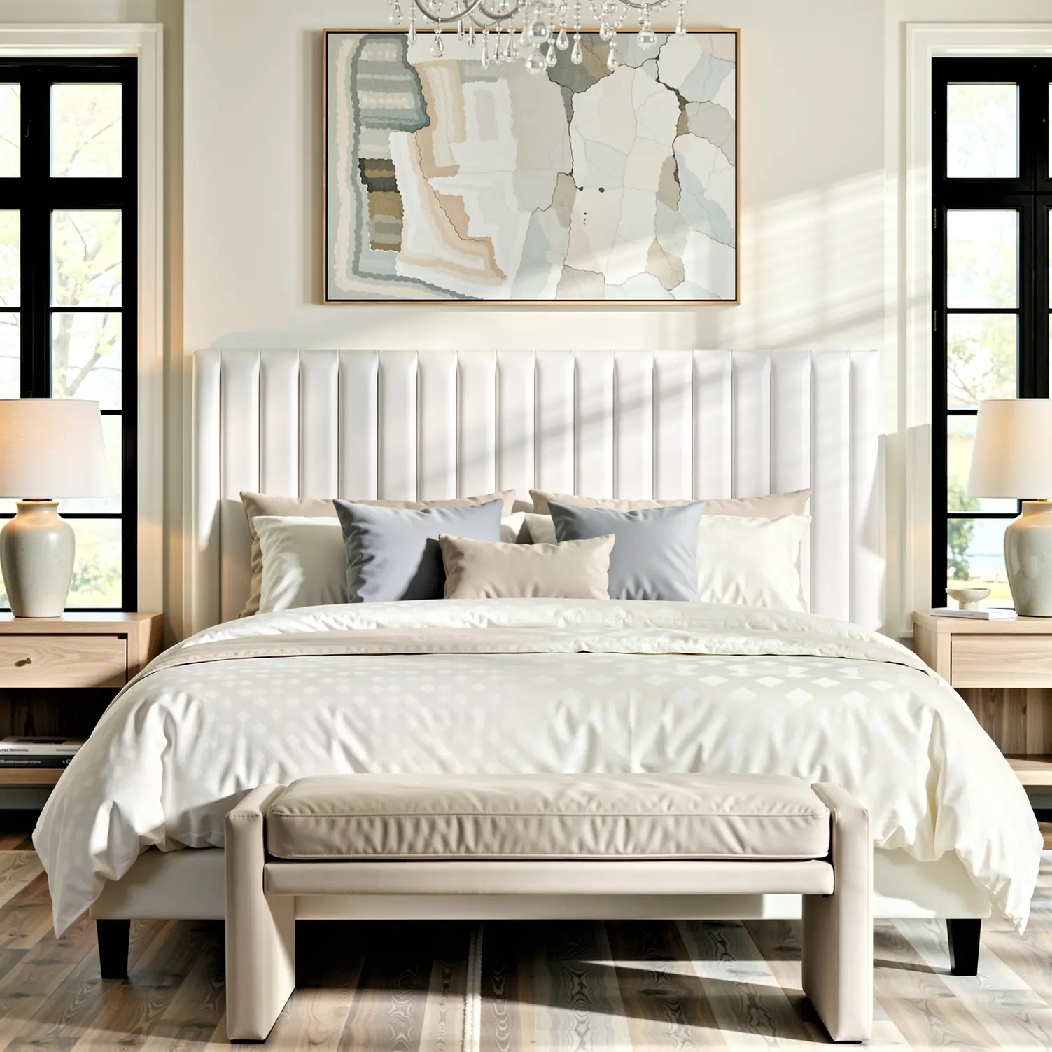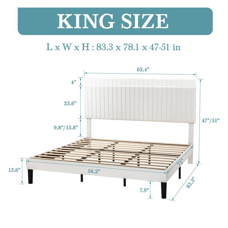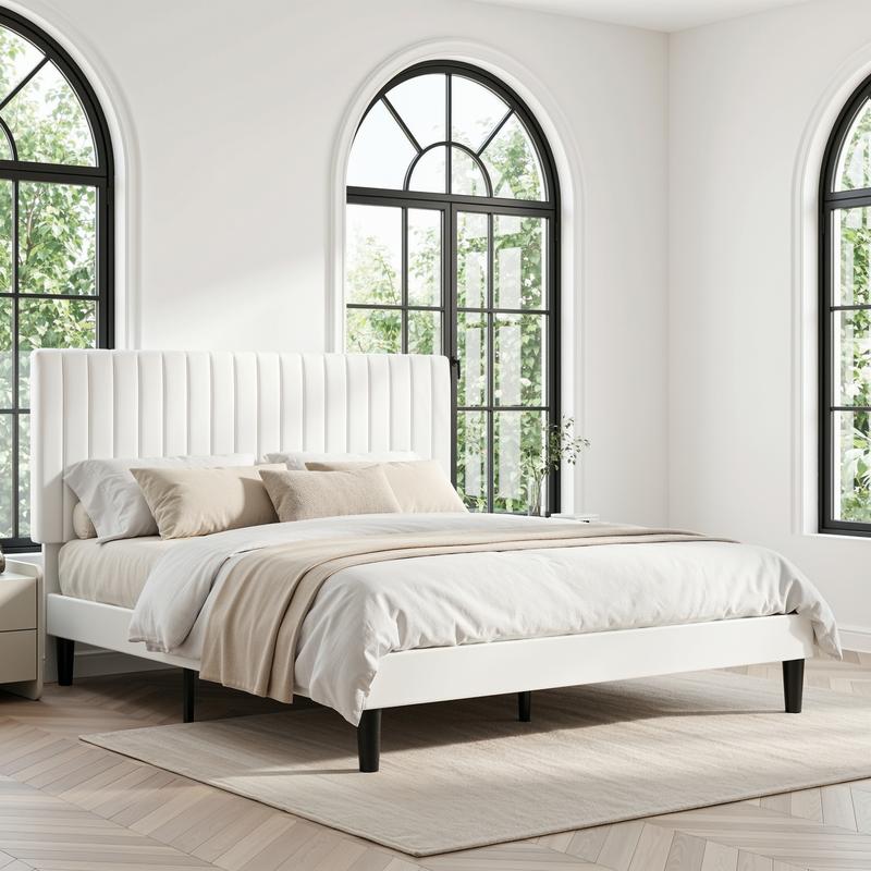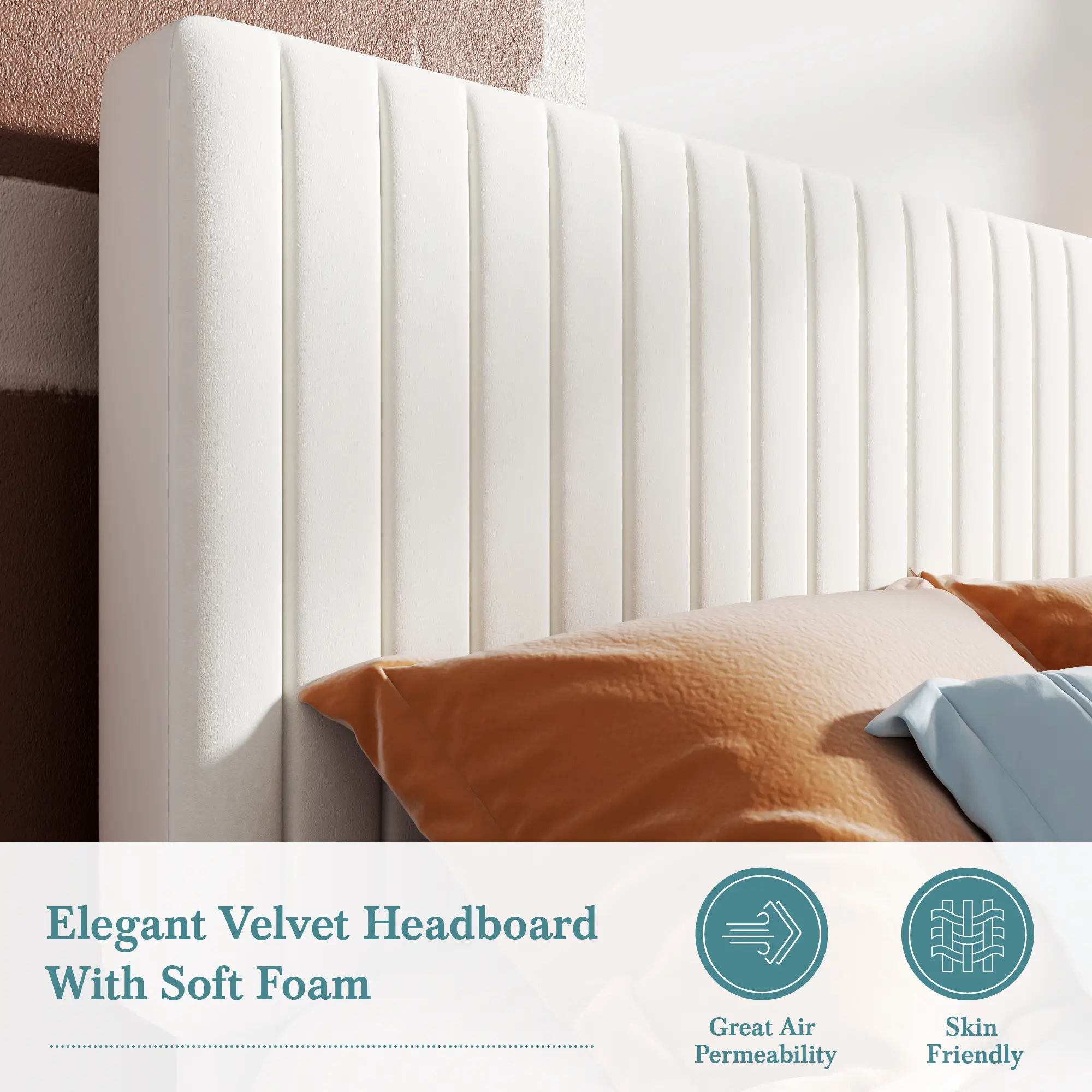 Cozy Headboard: The bed frame's adjustable headboard, designed in a modern vertical channel tufted style, is covered by skin-friendly velvet fabric, which will add sophisticated style to any bedroom.