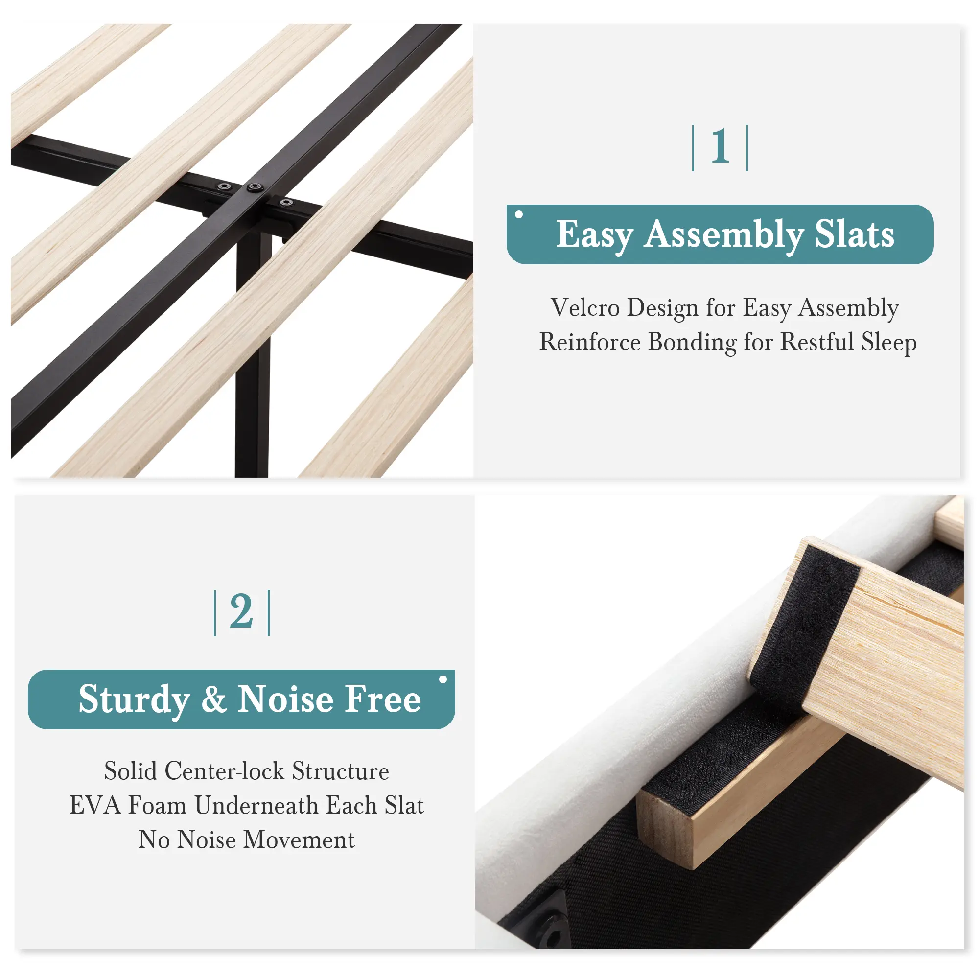 Sturdy & Durable: This platform bed's strong wooden slats and durable steel structures make it last without shaking. The bed frame can support up to 800 lbs.