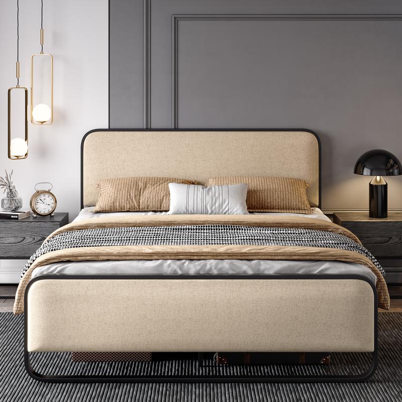 5. SHA CERLIN Linen Fabric Upholstered Platform Bed Frame with Metal Frame, Curved Modern Headboard and Footboard【Frame Only No Mattress】, Large Under Bed Storage, No Box Spring Needed, Modern, Beige#ChristmasGifts#TikTokShopBlackFriday