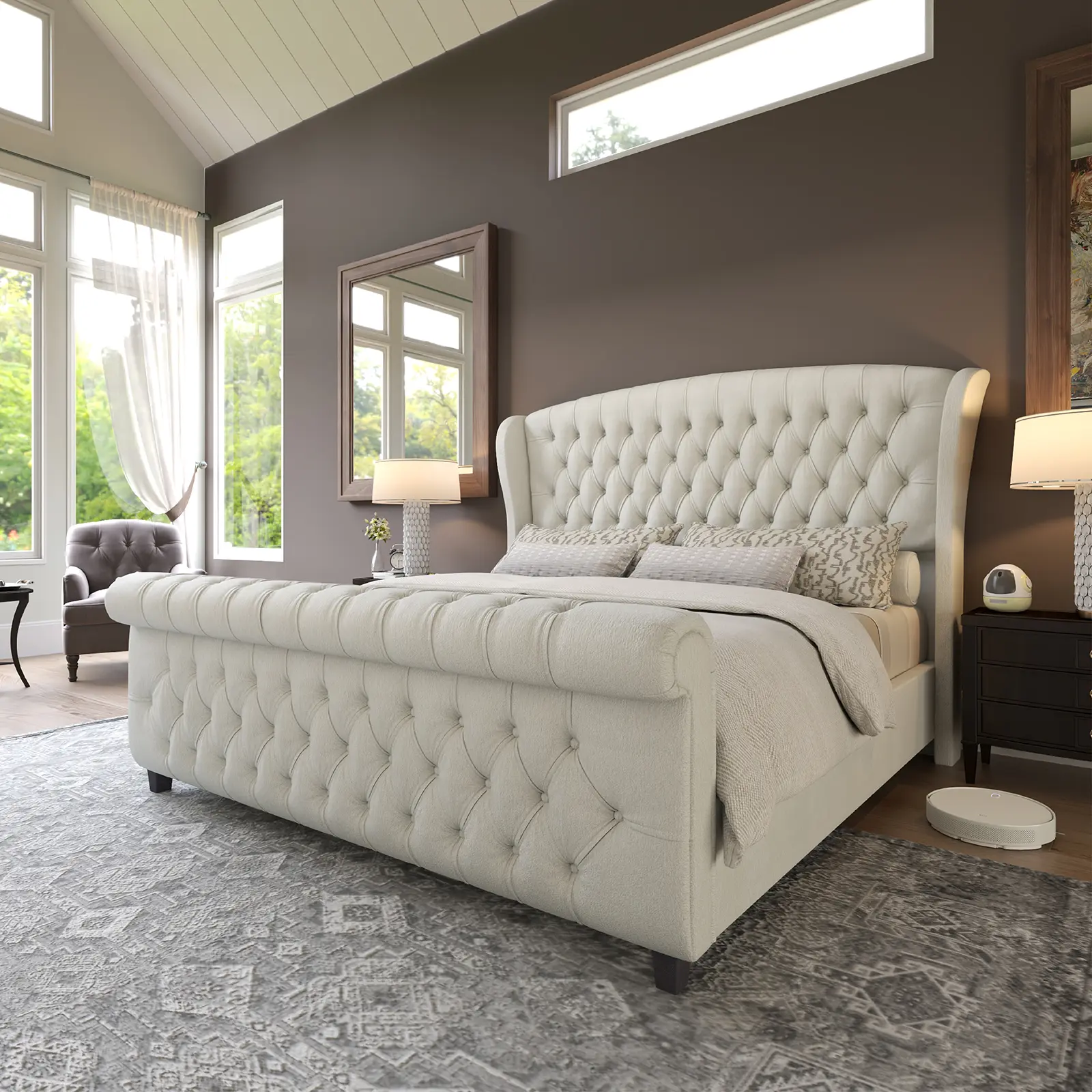 ·CONTEMPORARY & LUXURY - Combines stylish buttoned detailing with striking rolled headboard & footboard design, this king size sleigh bed is easily mixed with any bedroom style or color scheme.