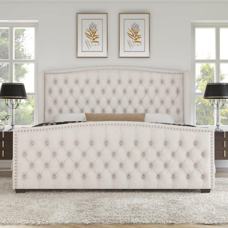 ·Grand and glamorous, our king bed frame features elegant tall wingback headboard & deep diamond tufted footboard, stealing spotlight in your bedroom decor.