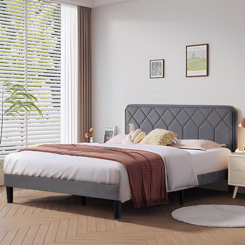 【Soft Head and Foot of the Bed】An upholstered bed with classic design style, the cross stripe design is more modern. Make your bedroom look more classic and gorgeous, bring a warm feeling to your bedroom.