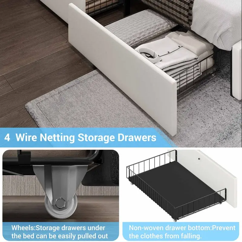 Storage Bed with Smart RGB LED Lights Controlled by APP and Remote Control