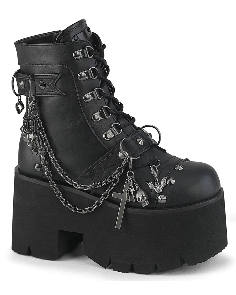 Demonia Ashes Chains & Charms Women's Black Platform Boot