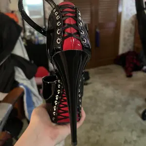 ✨ Pleaser Delight-660FH Black-Red Pat-Black Platform Sandals are perfect for summer. These elegant sandals feature a striking black and red patent finish. The 6" stiletto heel and 1 3/4" platform offer a sophisticated look. Ideal for women seeking stylish footwear.
