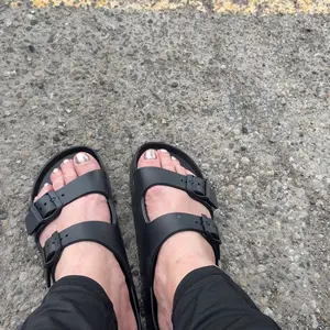 Wasn’t sure about these but they are fab. I sized down and they fit great. Very comfy. I know have three pair. My go to sandal for the summer