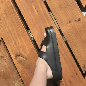 Im not too sure about these. I thought they would be more soft/rubber, but they're that harder, slippery feel. I've had surgery on my feet so not sure how they'll be wearing if it rains. Kind of disappointed in them. I like the slight platform/chunky, but don't like the hard slippery texture.