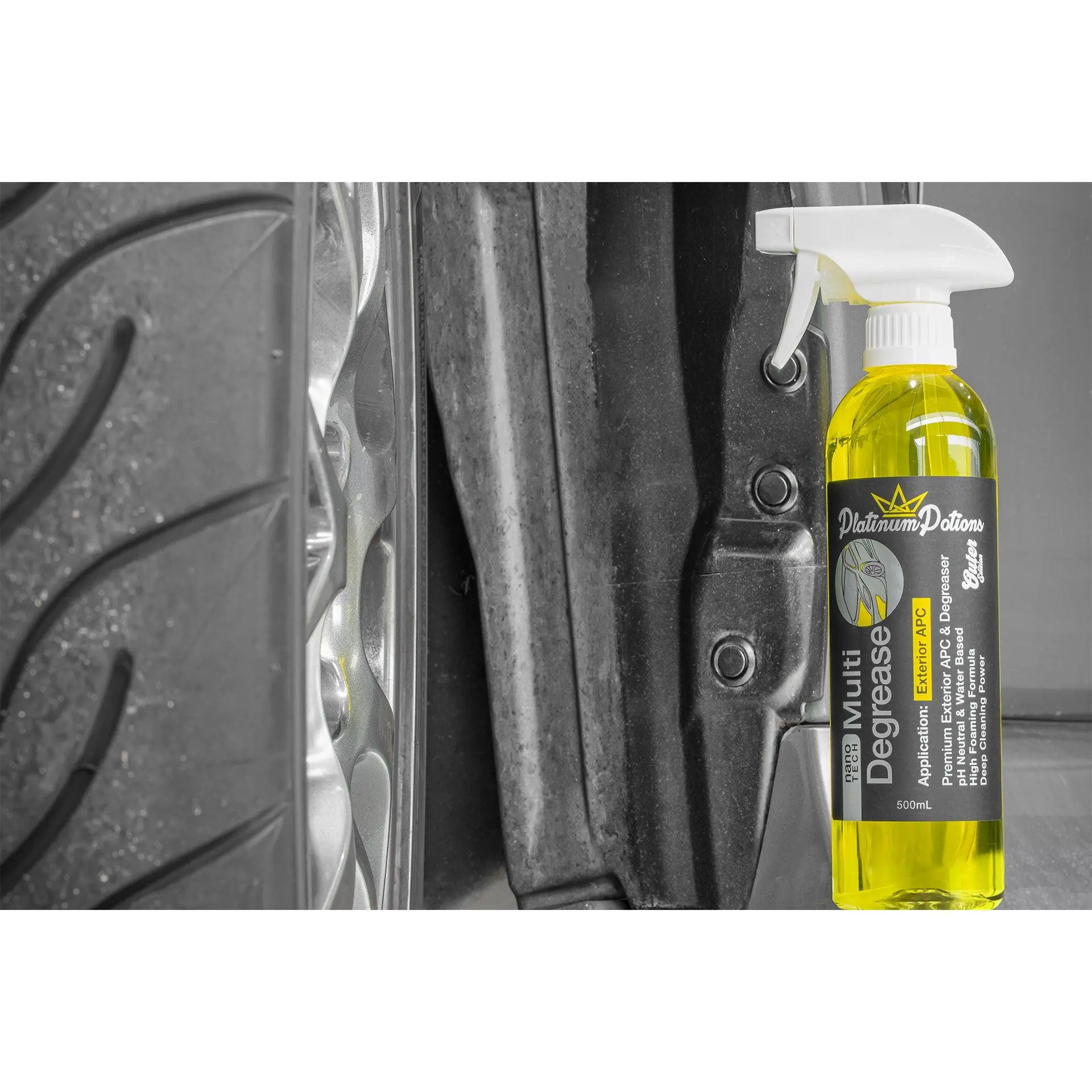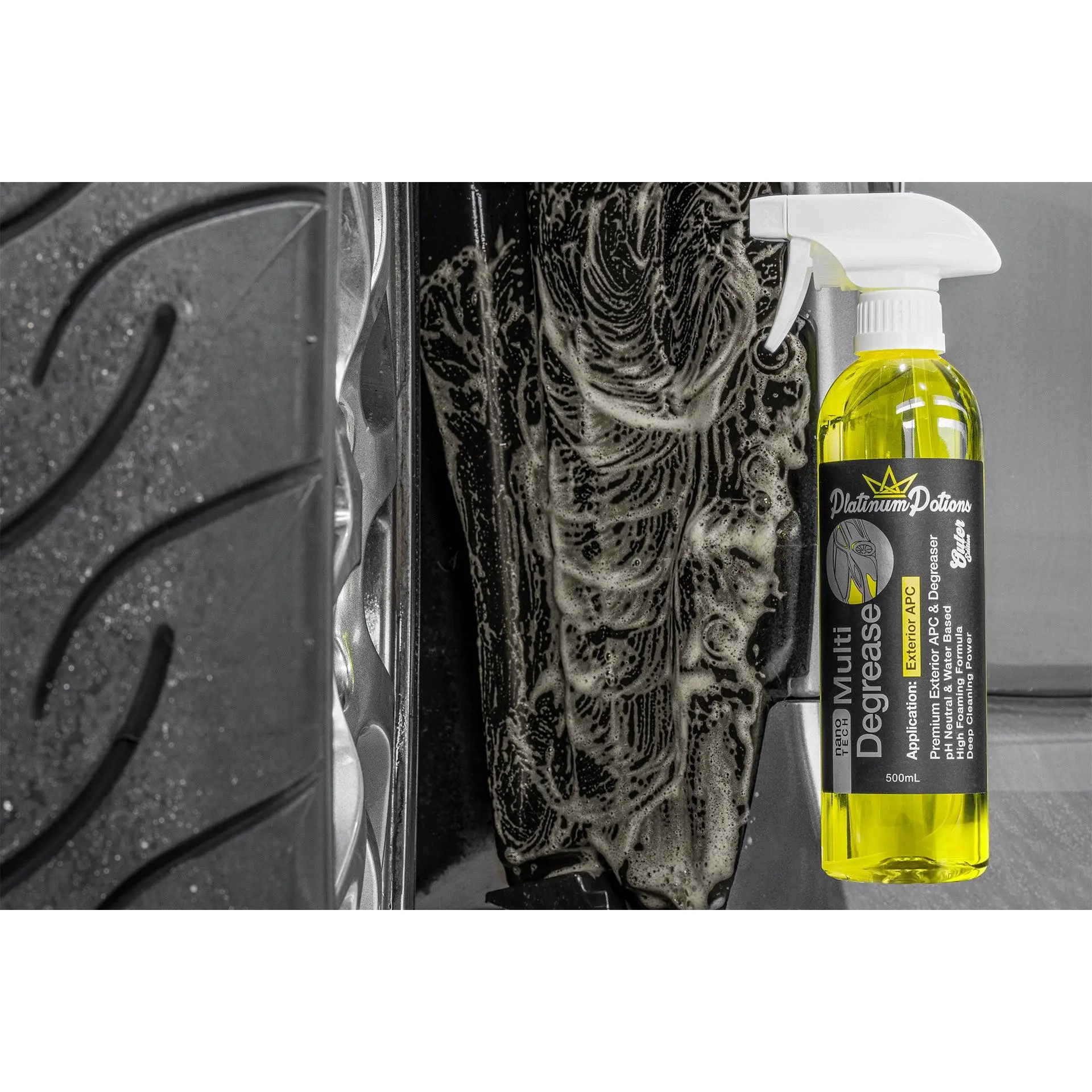nano-TECH Multi Degrease is a premium quality all-purpose exterior cleaner. It safely and gently breaks down stubborn dirt, oil, grease, road grime, tree sap, tar, bird droppings, and exterior dressings/coatings. This versatile solution is safe for engine bays, inner wheel guard linings, undercarriages, suspension, drivetrain components, scuff plates, and various exterior trims.