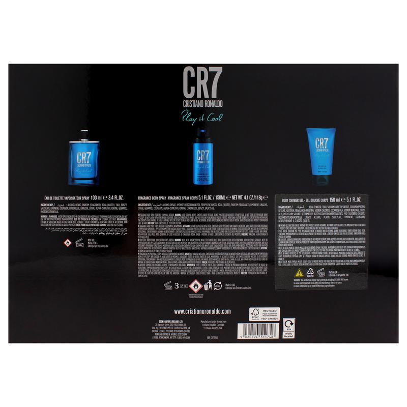 Play It Cool by Cristiano Ronaldo for Men - 3 Pc Gift Set 3.4oz EDT Spray, 5.1oz Shower Gel, 4.1oz Body Spray