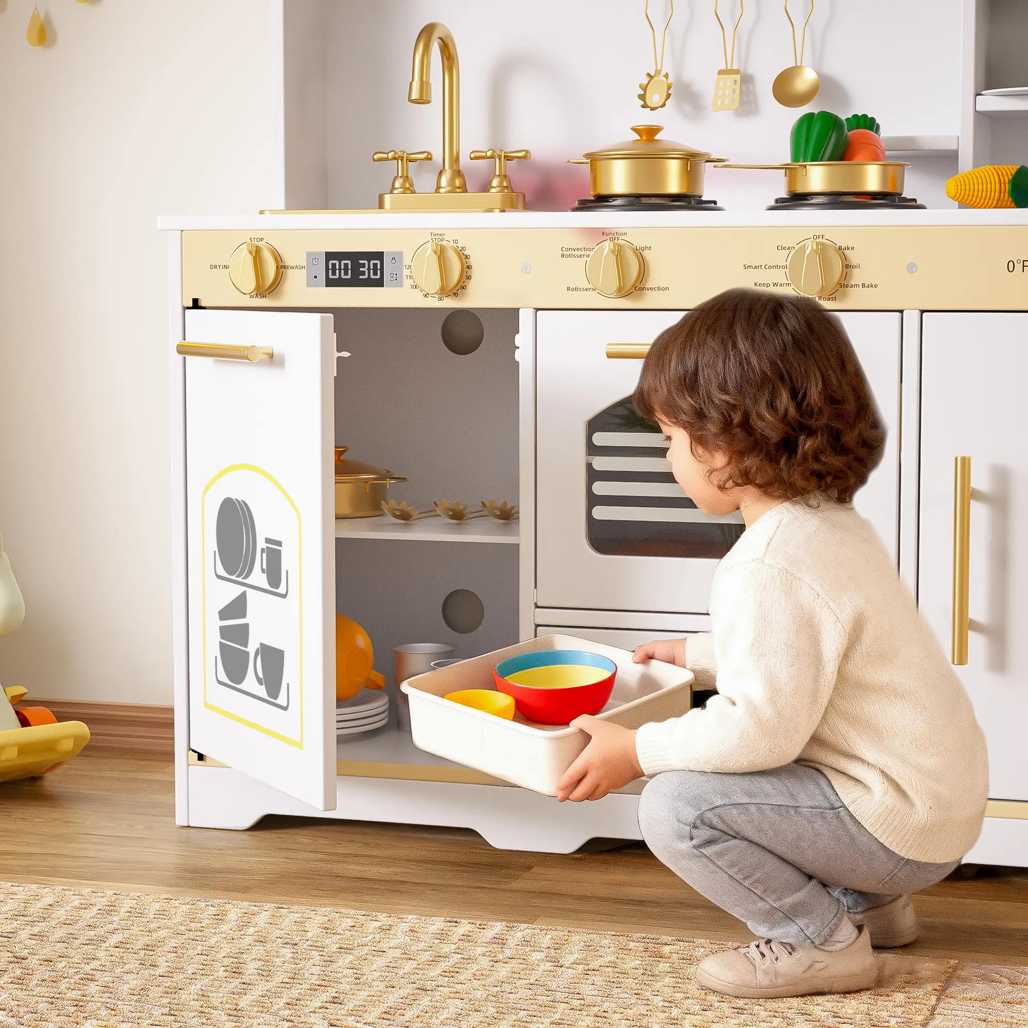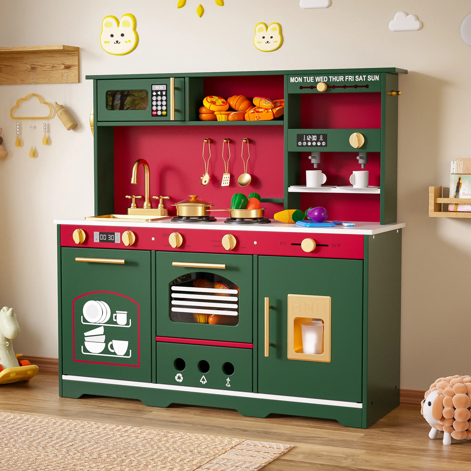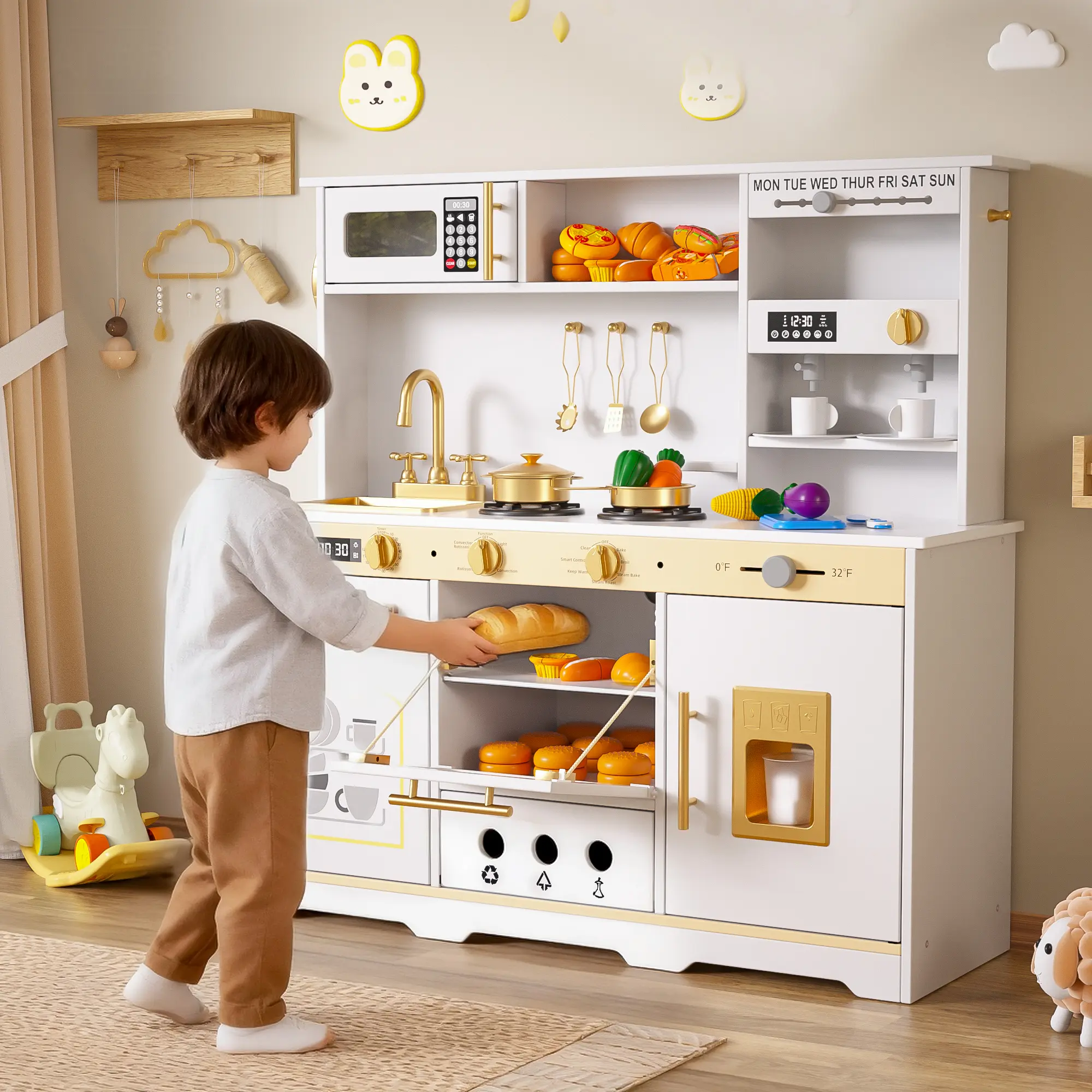 This lifelike play kitchen comes loaded with 21 fun-filled add-ons: an ice dispenser, espresso maker, weekly calendar, microwave, oven, dishwasher, garbage bin, plus a variety of cooking tools and coffee mugs. With such a wide range of items to discover, it instantly becomes the heart of playtime, sparking endless make-believe adventures.