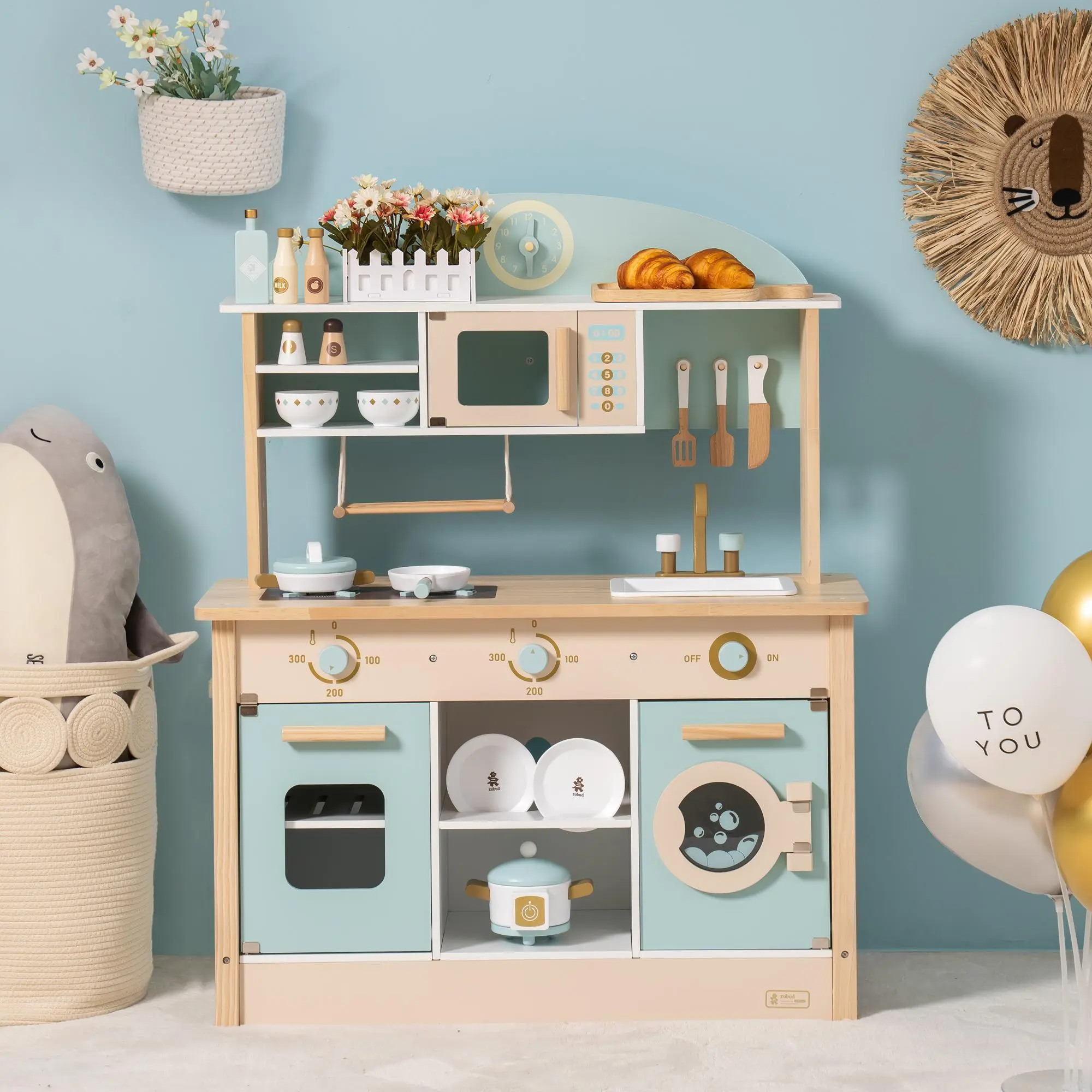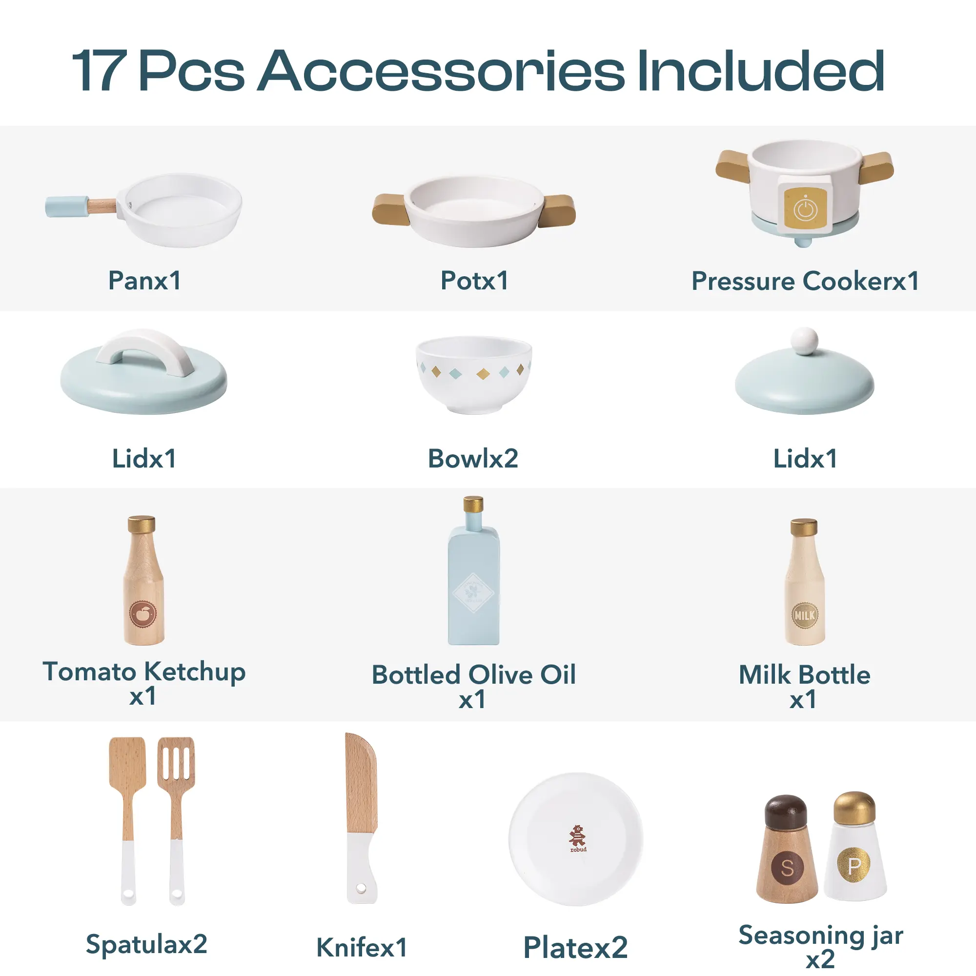·Durable Materials: Made from MDF and solid wood, this kitchen set is environmentally friendly and non-toxic, meeting American ASTM F963 and CPSIA standards, ensuring safety and durability.