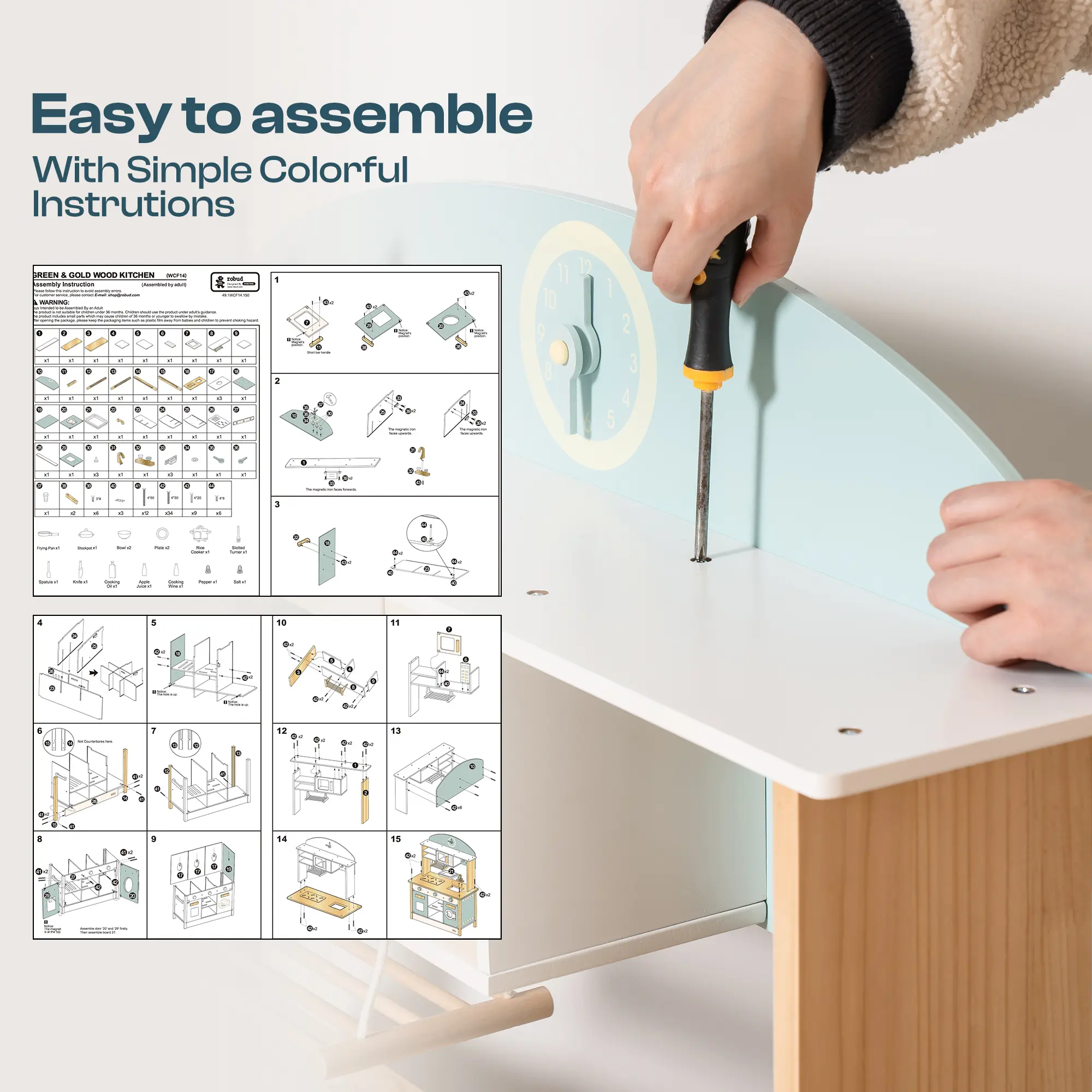 ·Assembly Instructions: The kitchen toys come with assembly instructions, requiring a screwdriver for assembly. Please contact us in case of missing parts or installation problems.