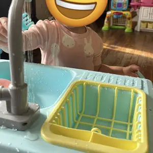 The floating toys (fish and frogs) add fun to fishing games. Use them for indoor or outdoor activities. The detachable drain rack filters and stores dishes. The sink is safe for children, eco-friendly, and BPA-free. Enjoy multiple ways to engage in role-play with this versatile play sink.