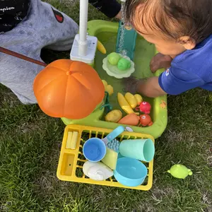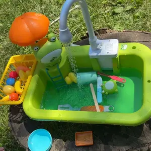 ·Included Items: 1 x Plastic Cup, 1 x Plastic Plate, 1 x Brush, 1 x Play Detergent, Plastic Knife and Fork Set, Various Play Food Items, Floating Toy Fish and Frogs