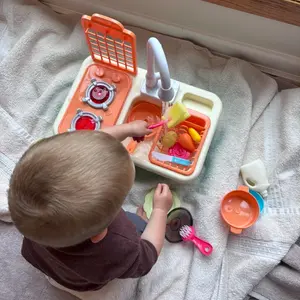 ·Included Items:1 x Plastic Cup1 x Plastic Plate1 x Brush1 x Play DetergentPlastic Knife and Fork SetVarious Play Food ItemsFloating Toy Fish and Frogs
