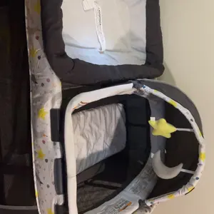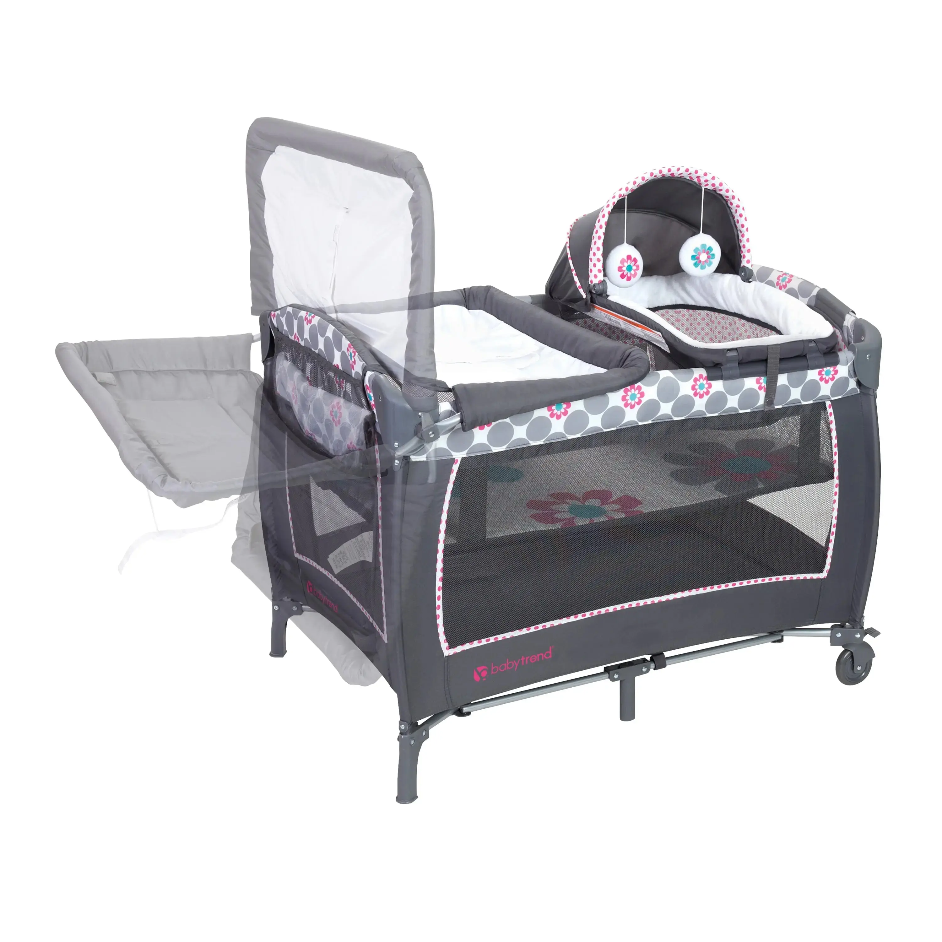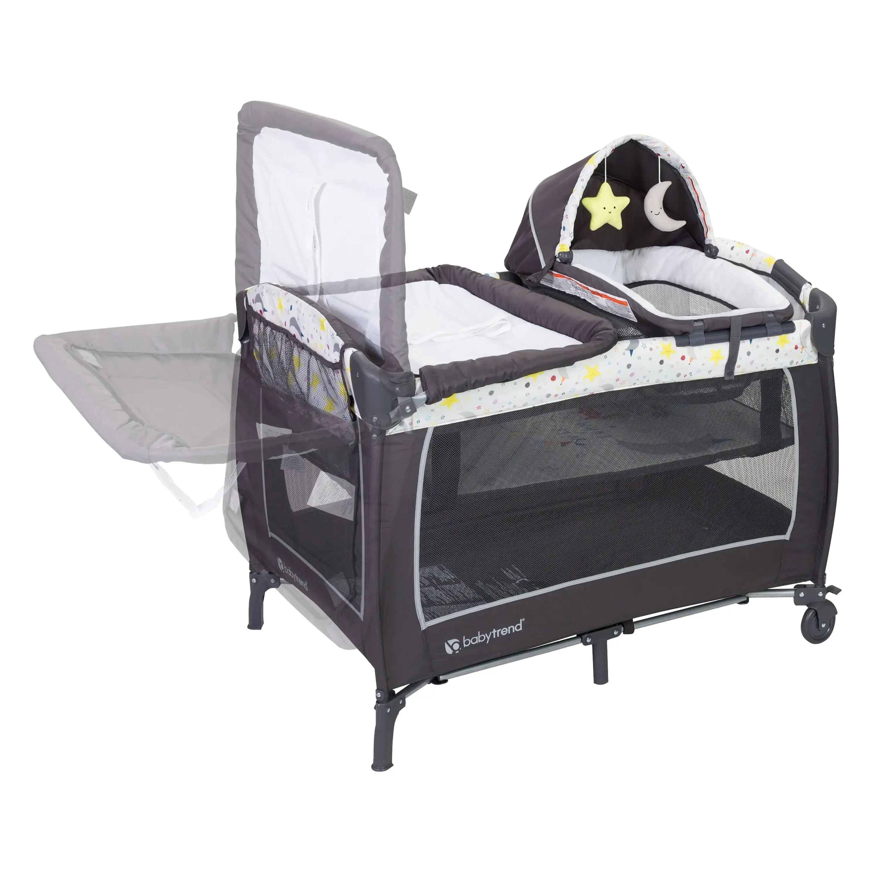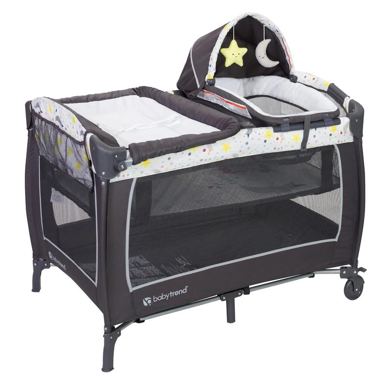 ·Materials: Playard 100% polyester fiber, Full-size bassinet 100% polyurethane foam pad, Napper 100% polyester fiber, Changing table 80% polyester fiber, 20% polyurethane foam pad