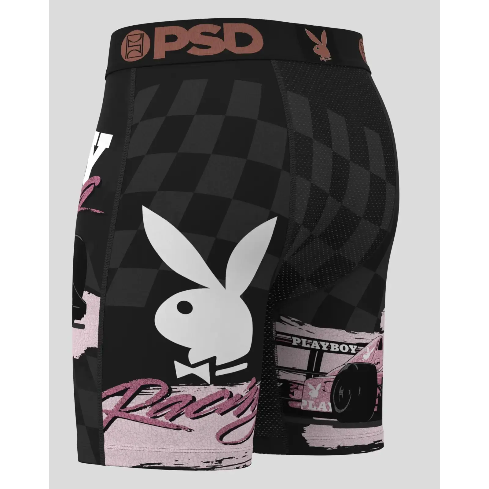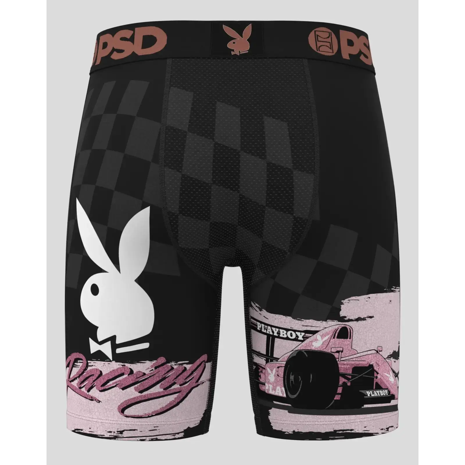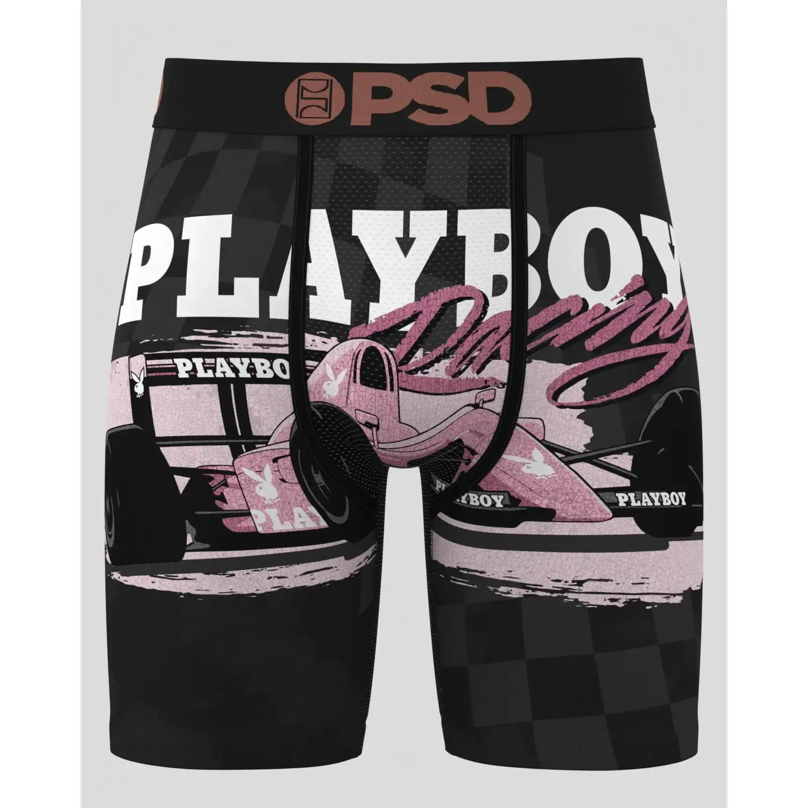 PSD Mens Playboy Grand Prix Boxer Brief - Standard Length 7 Inch Inseam, Soft and Breathable Poly Blend Fabric