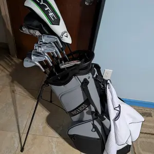 Got ALL KINDS of awesome stuff in this bag. Great looking shorts, drink sleeve cooler, belt, club cover, ball marker and a bag of tee's. Would DEFINITELY recommend to buy.
