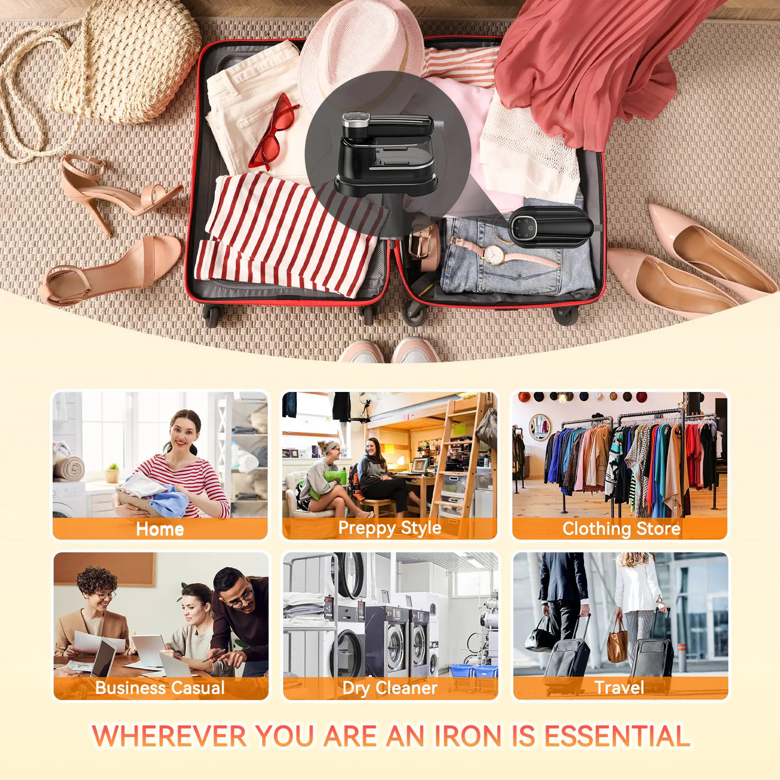 【Safe & Suitable for All Fabrics】Featuring a smooth, anti-scratch ceramic panel, this mini iron efficiently removes creases and wrinkles from all types of fabrics, including delicate materials like silk, wool, lace, nylon blends, cotton, linen, and much more. Now you can travel worry-free, knowing your favorite clothes are protected from damage and will always look fantastic.