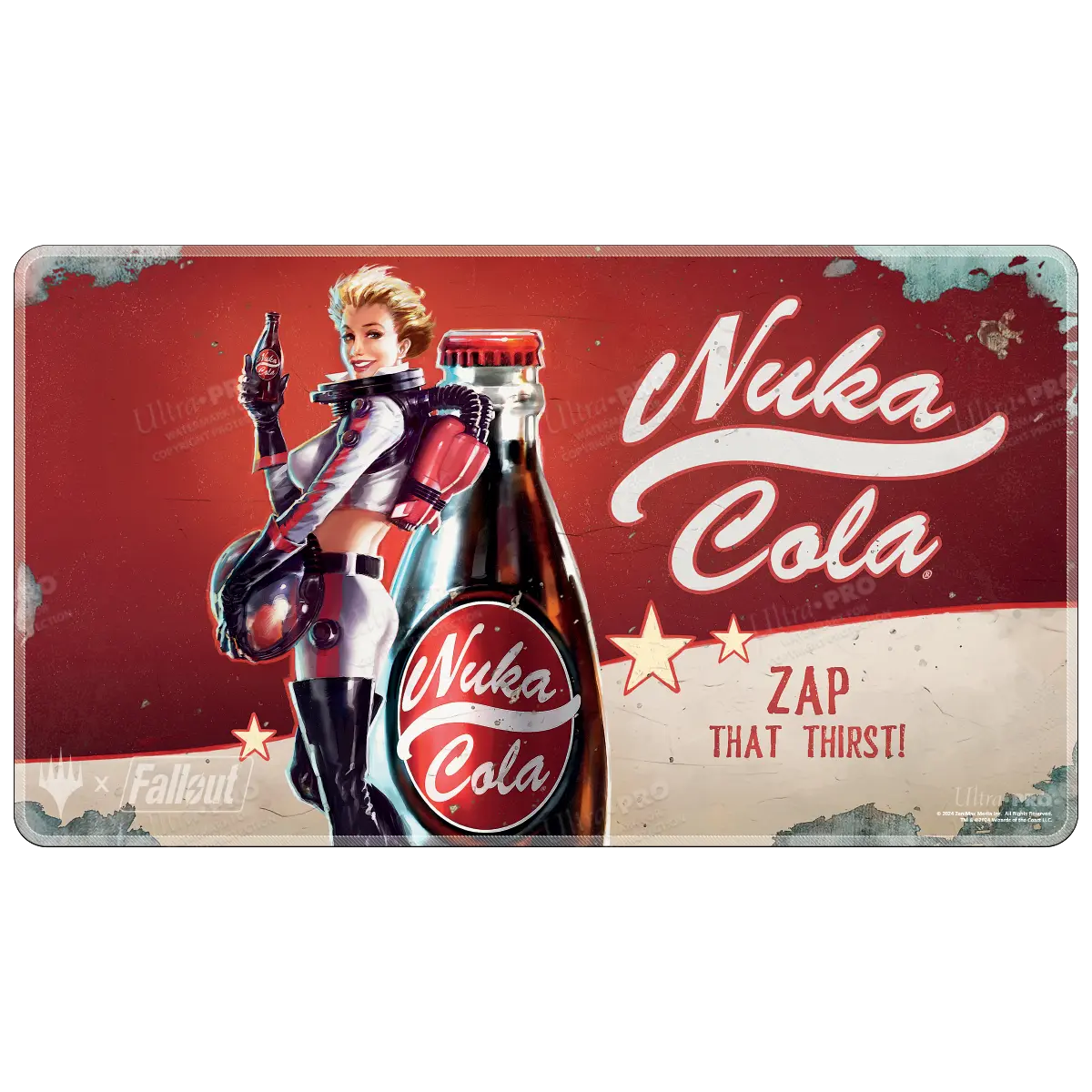 First the playmat quality and look is amazing. Ultra Pro making foiled playmats amazing. The problem I have is with the distressed look they did with the art. They printed the oil/dirty mark too dark, and it actually looks like there's something wrong with it, almost as if someone took a grease pencil and started drawing lines on it. The foiling on these spots highlights the false errors even more and makes it look like you have grease, or your play mat is messed up. I was in amazement as I unboxed it and then sat there licking my finger trying to wipe the black marks off then I thought it was like printer lines like on mtg card then looking at the stock image is when I noticed these were printed on. It really did take away from the appeal of the play mat. The rest of the destress look is fine it's just the hard black lines that really ruin it. I don't know if I'll keep it.