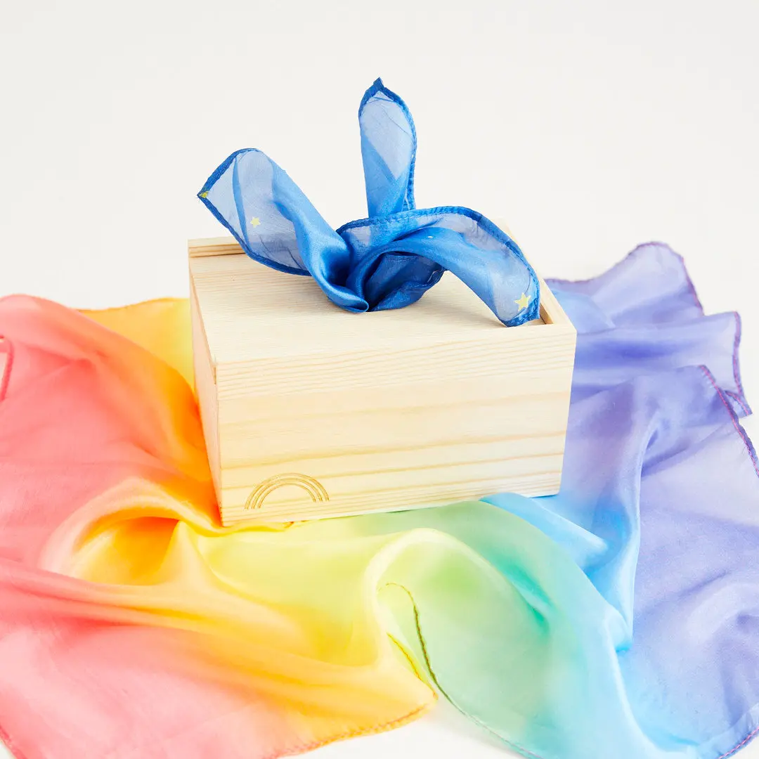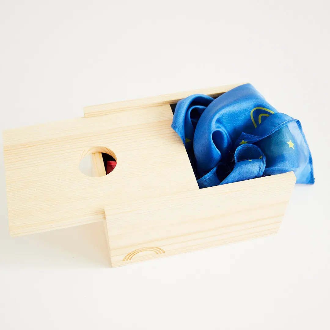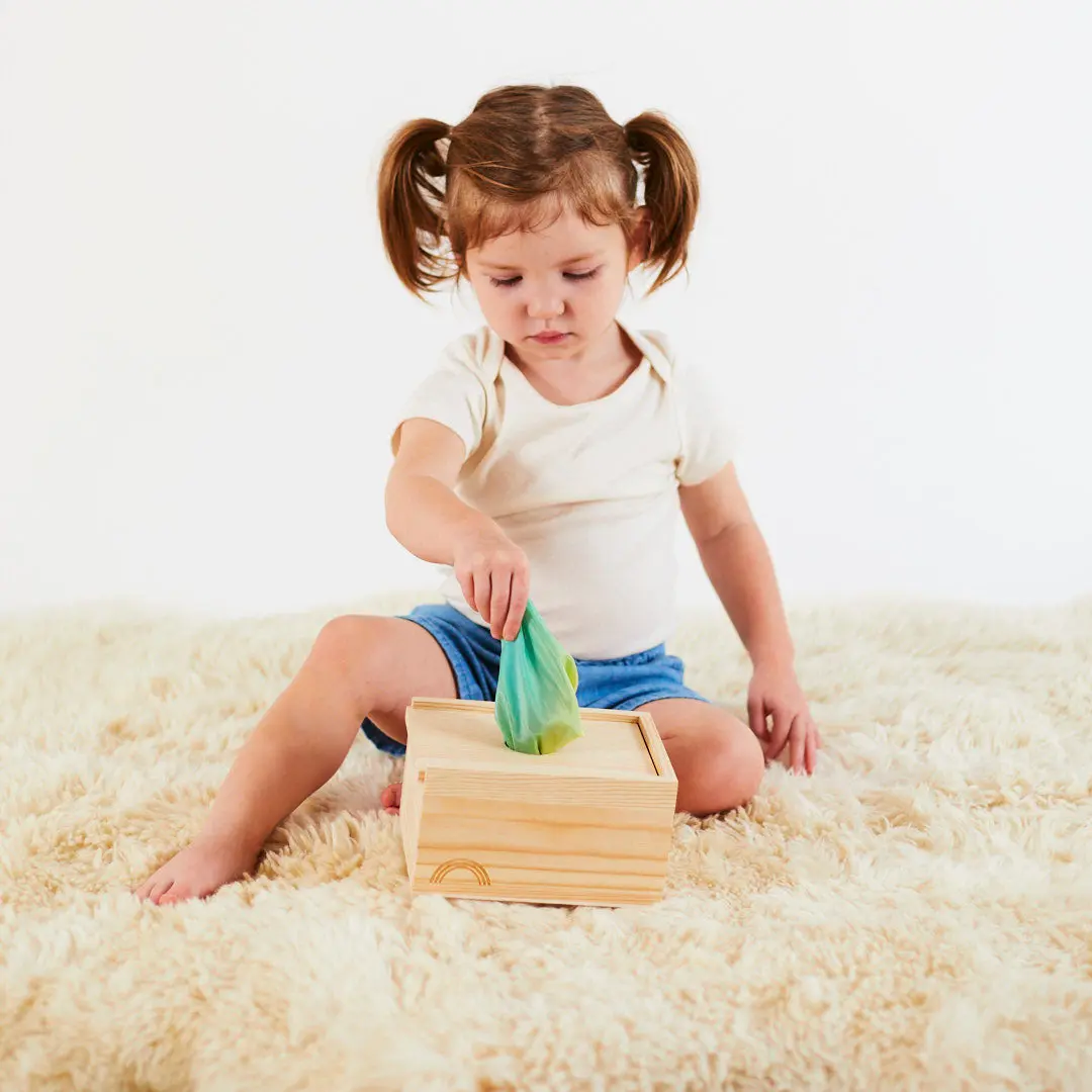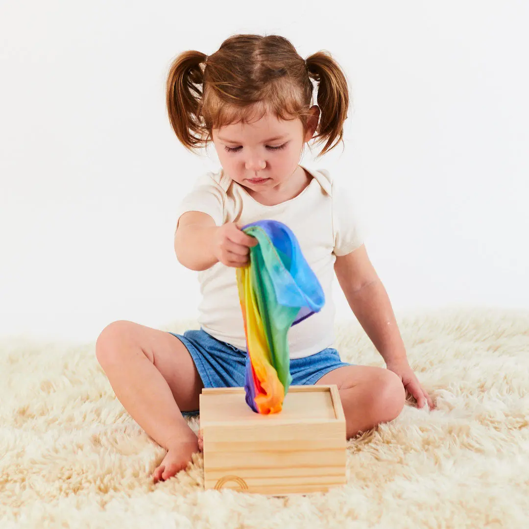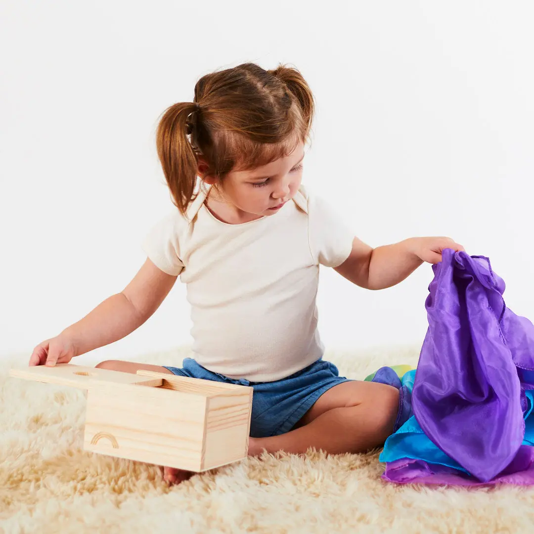 The Playsilk Pull Box is the perfect toy to support your little ones development. Build fine motor skills while exploring textures and encouraging hand-eye coordination. Babies will love pulling playsilks out of the box!