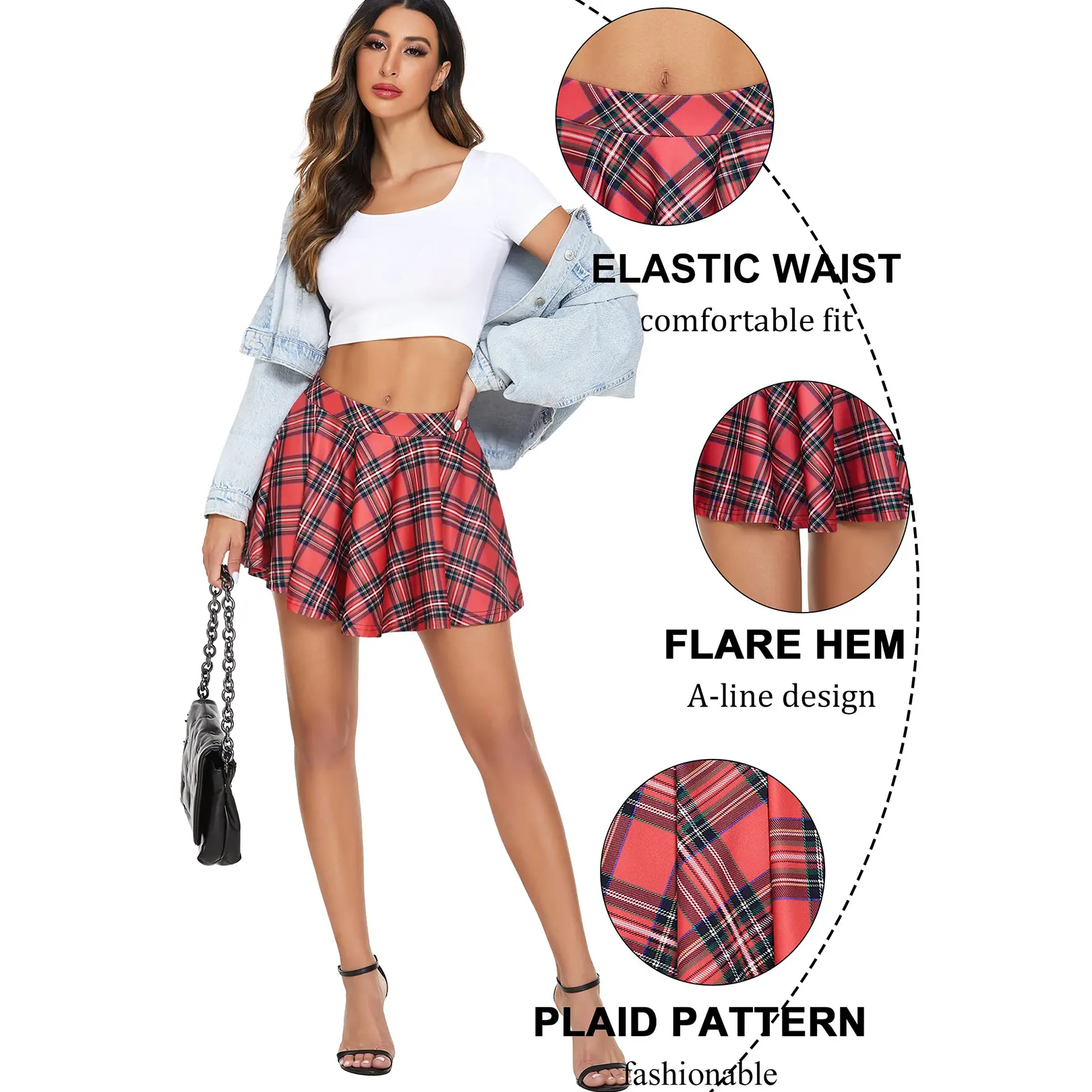 ·The schoolgirl mini skirt is made of 95% Polyester and 5% Spandex, the material is soft and skin-friendly,comfortable and breathable.
