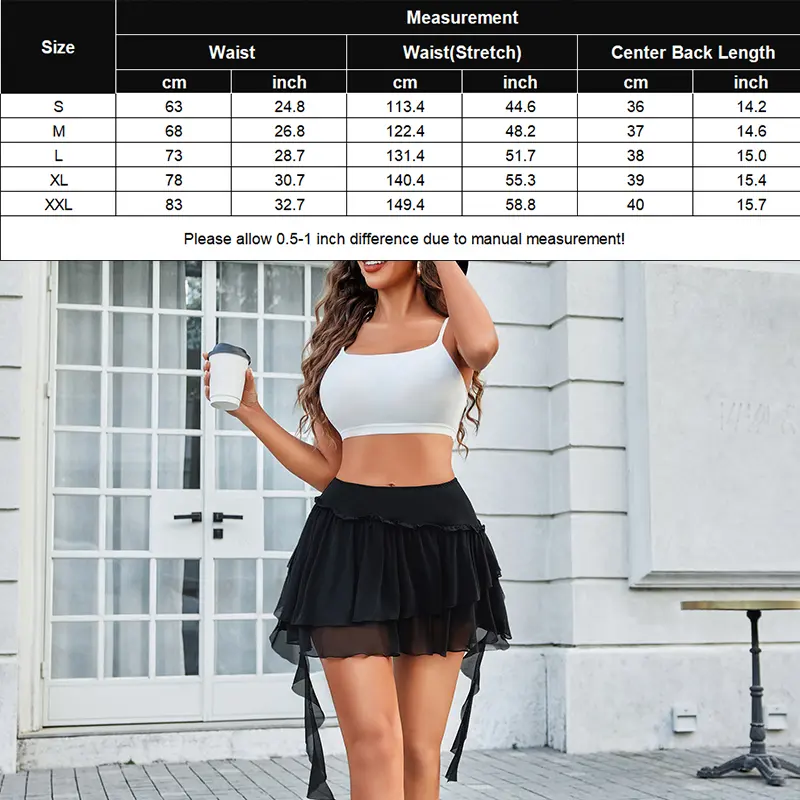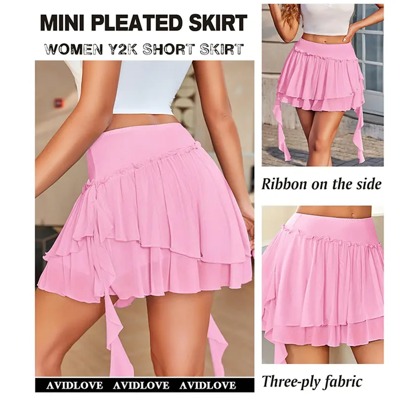·Design & Fit: Multi-layered pleated skirt with tiered ruffles and flowy ribbons. Three-tiered mini skirt in non-see-through mesh; Elastic waistband with flattering pleated accents; A-line silhouette enhances curves.