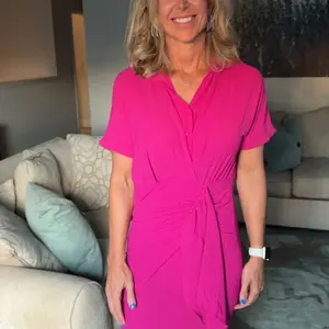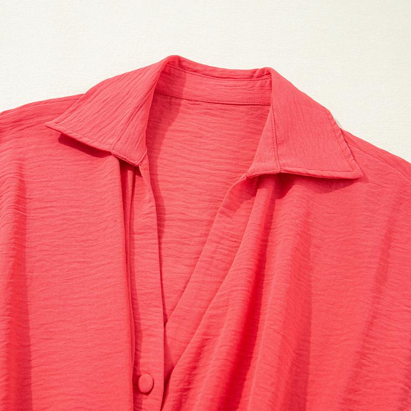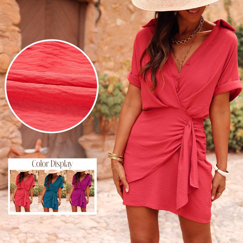 ·Button-Front Mini Dress in WatermelonStay cool and chic on warm days with this short-sleeve wrap mini dress. The flattering wrap silhouette and button neckline add a touch of polish, perfect for spring parties or any special occasion. Made from easy-care 100% polyester, it’s as practical as it is stylish.