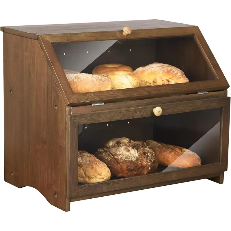 [ LARGE CAPACITY ] While other bread boxes can only hold 1 loaf of bread, our 2 layers 14.6" x 9.4" board is large enough to hold 2 large loaves of bread, rolls, muffins and more, which will avoid effectively deformation of bread caused by extrusion