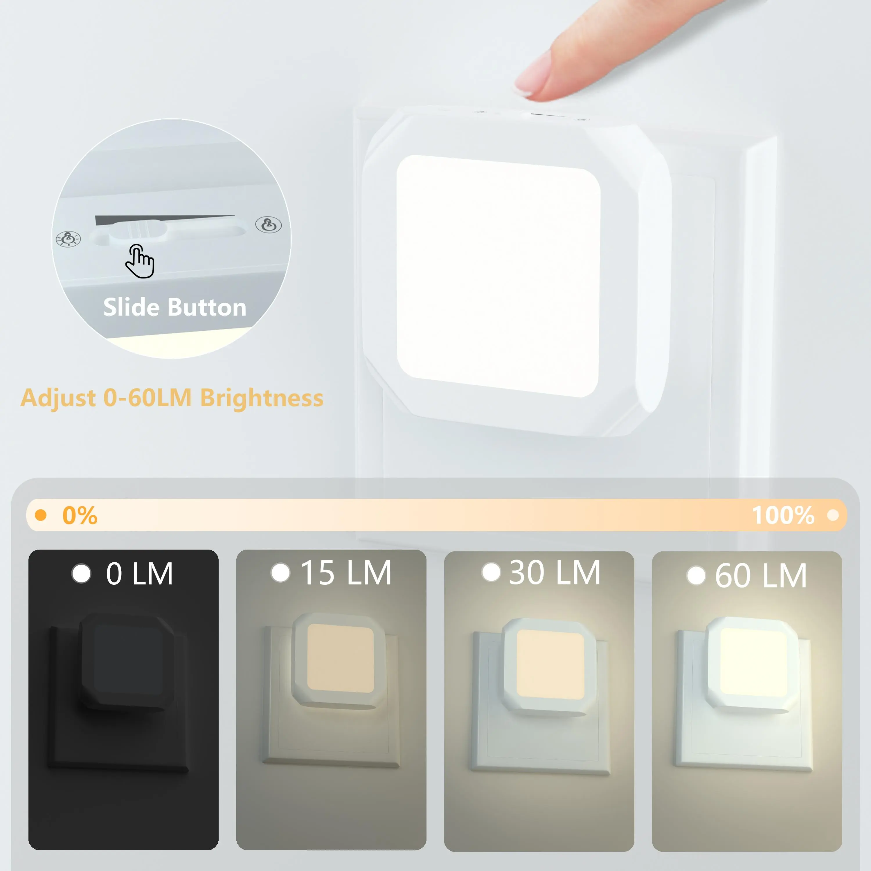 Adjustable Brightness: You can continuously adjust the warm white brightness from 0 lm to 15 lm with a sliding switch. You can adjust the brightness to your desired level for different occasions to provide the best user experience.