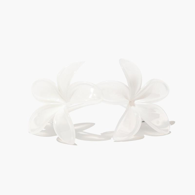 Add a splash of color with color-changing Plumeria hair clips. These flower clips are not only cute and stylish, but they also draw attention to your unique hairstyle. With a pop of permanent white color on each clip, the rest of the clip changes from clear to purple and/or Fuchsia while you're outside in the sun.