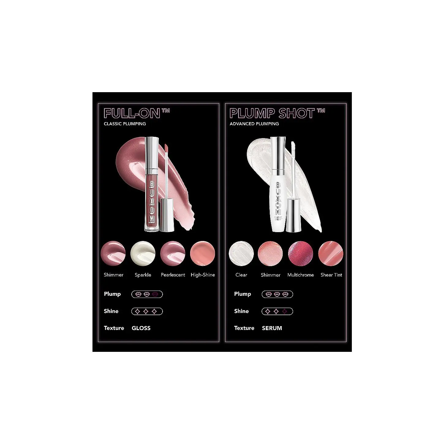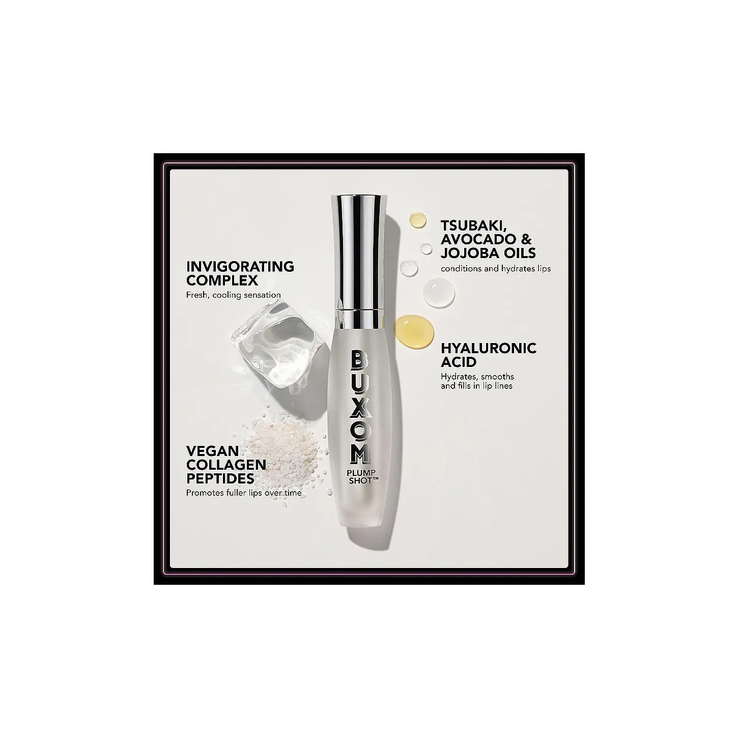 ·Buxom's Plump Shot Collagen-Infused Lip Serum is the most advanced lip plumper, a collagen-infused lip serum clinically shown to visibly plump lips and immediately decreasethe appearance oflines.
