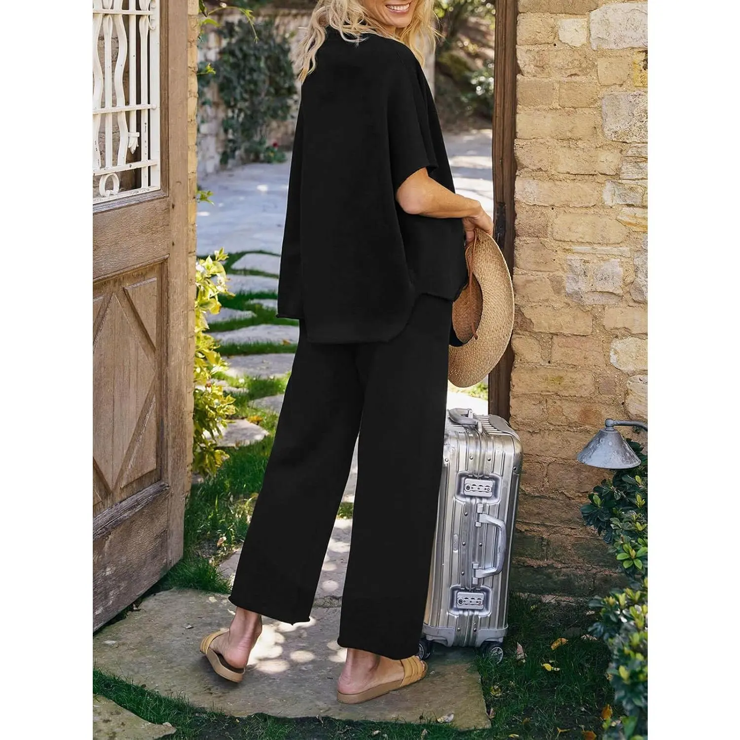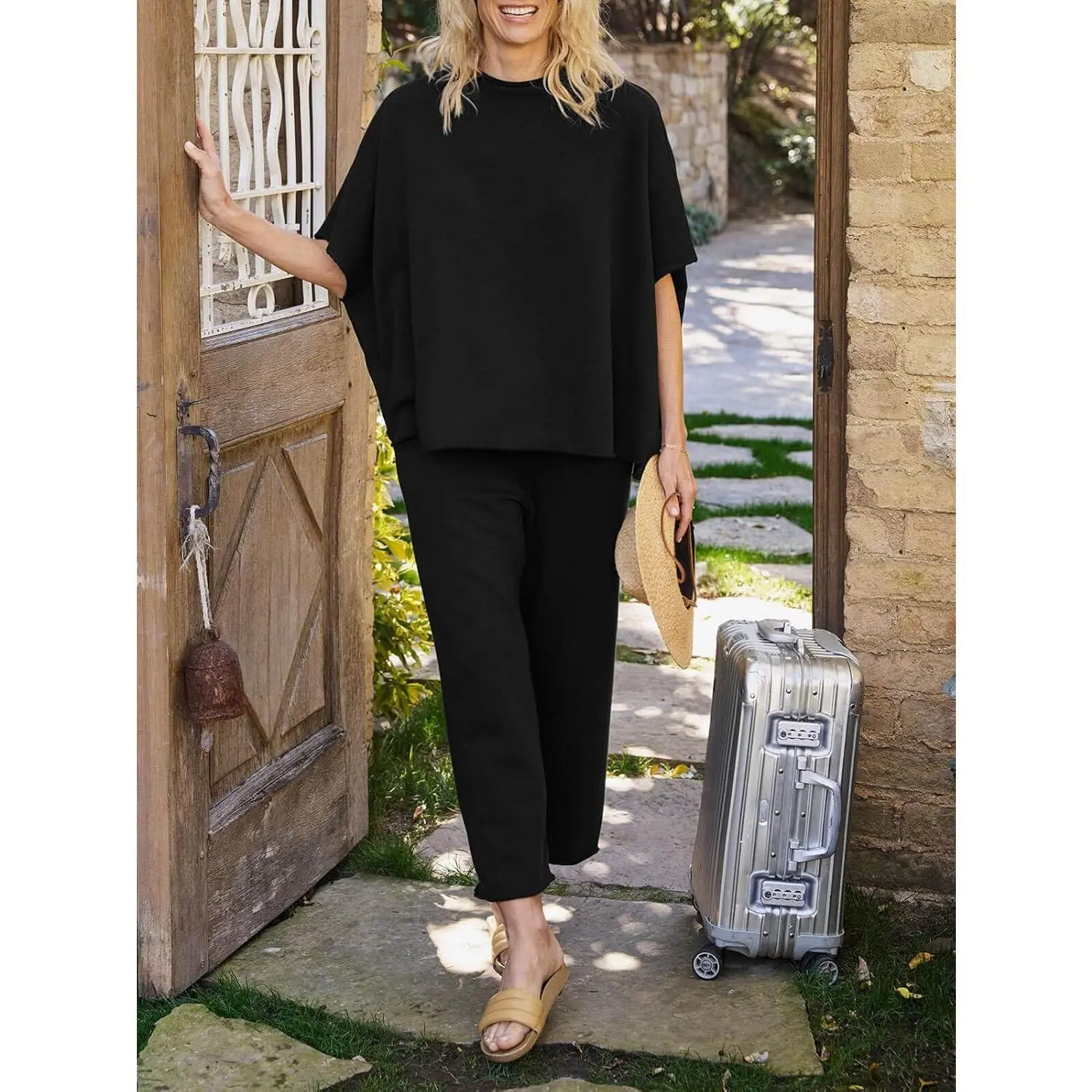 This outfit provides a comfortable yet stylish option for any woman on the go. Embrace an effortless and chic approach to dressing with this laidback lounge set. Available in sizes L-5XL, it's the perfect choice for plus-size women.