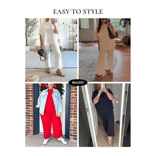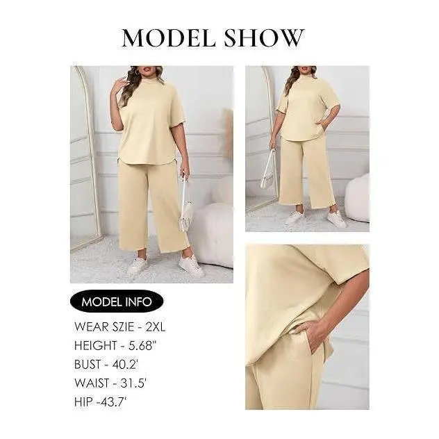 ✨ Elevate your loungewear with Imily Bela's Plus Size 2 Piece Outfit! 🌟 This set features a 3/4 batwing sleeve capelet pullover top and wide leg pants. Crafted from 62% Polyester, 34% Cotton, and 4% Elastane, it offers a cozy and relaxed fit. Perfect for home lounging or errands, this outfit is ideal for all-day wear.